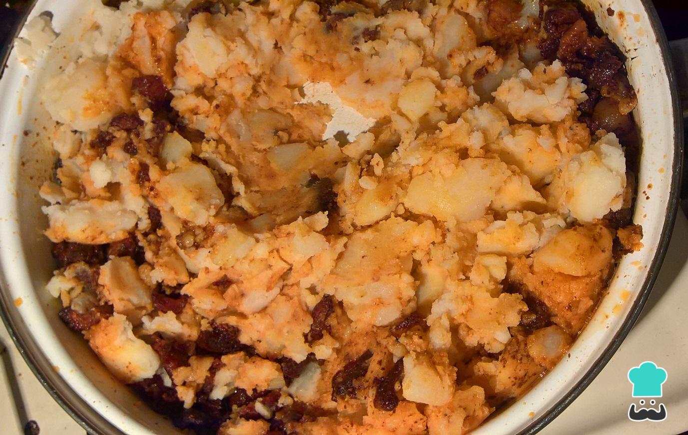 Una vez lista la papa la hacemos puré y le añadimos el chorizo, entonces mezclamos muy bien hasta que quede todo bien integrado.