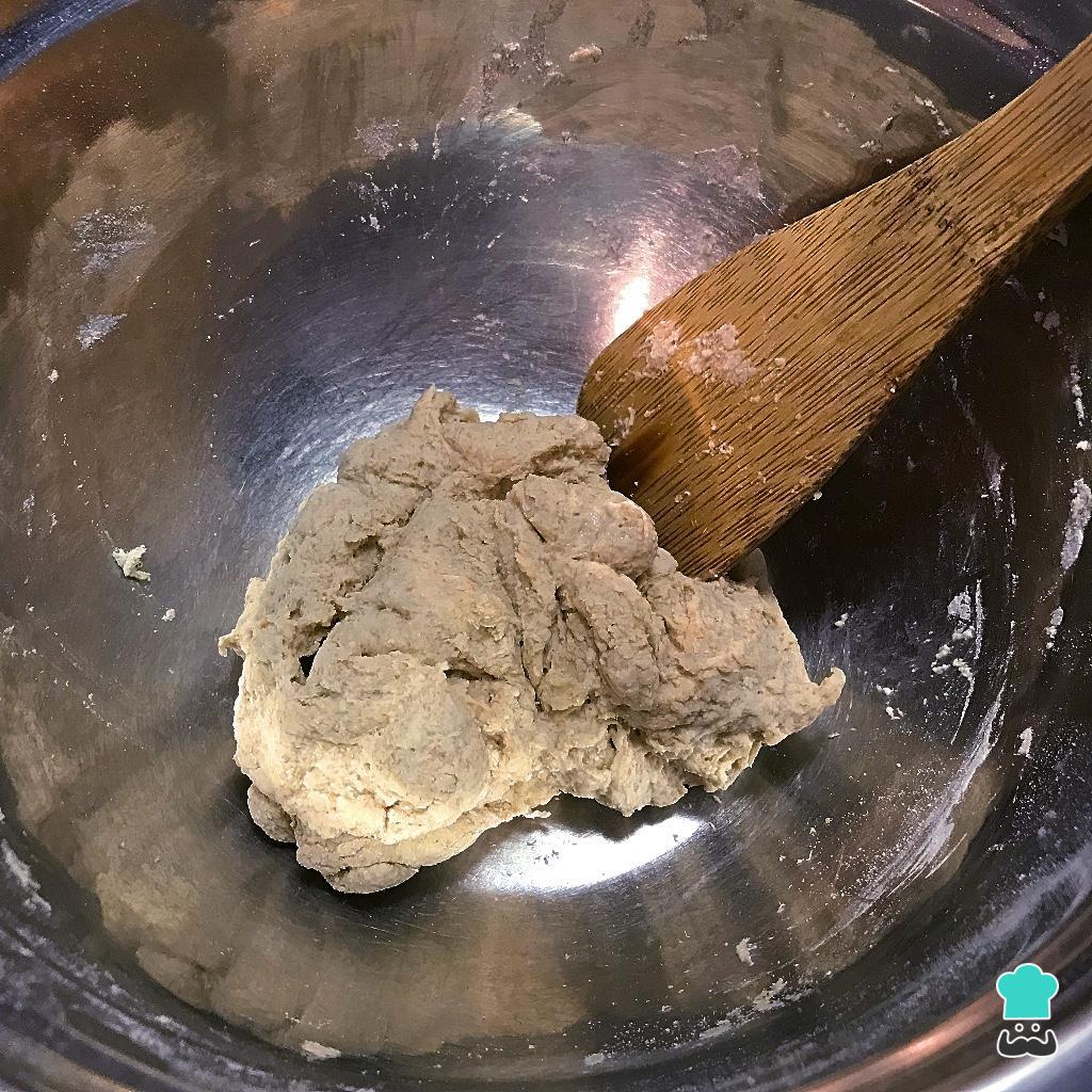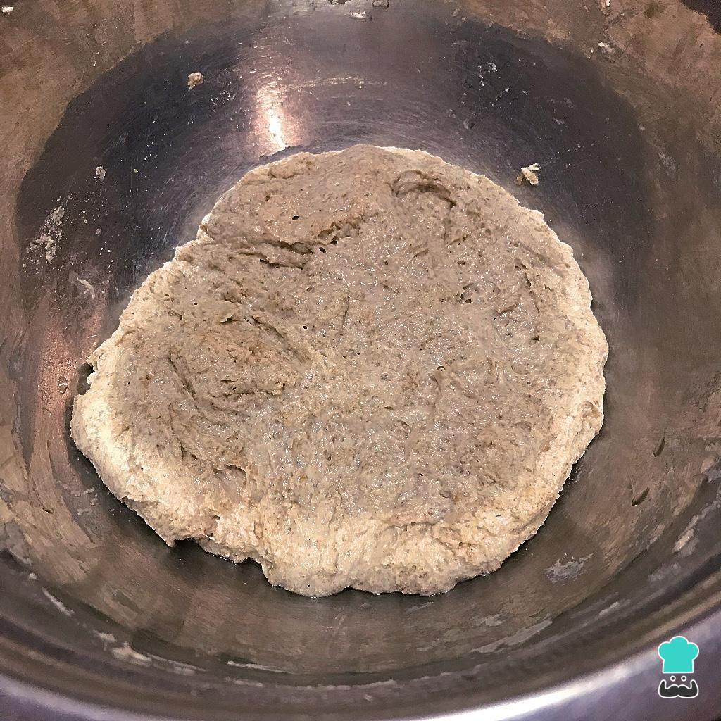 Añade el agua caliente e integra con una cuchara o espátula. Después, cubre la masa con un paño limpio y deja que repose de 2 a 4 horas para que doble su volumen, en un lugar oscuro y cálido.