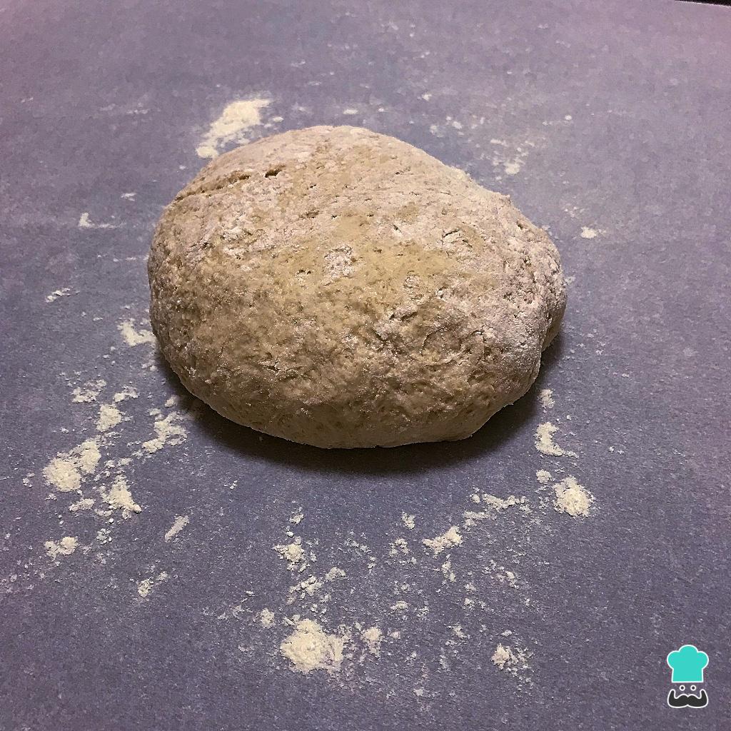 Amasa un poco para eliminar el aire, trabajar el gluten y lograr un pan casero sin masa madre más esponjoso. Haz una bola y deja que repose una hora más para aumente su tamaño nuevamente.
