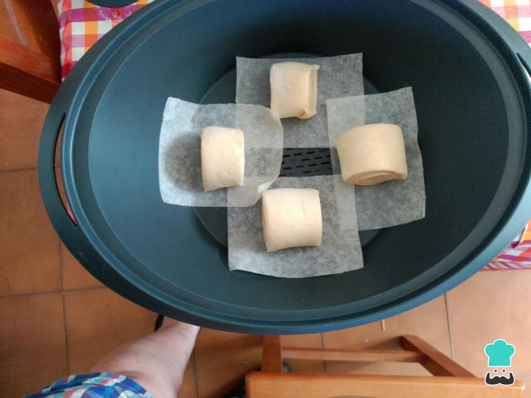 Pasado este tiempo saca los panecillos del Varoma y ponlos sobre un papel absorbente de cocina para sacarle el exceso de humedad.