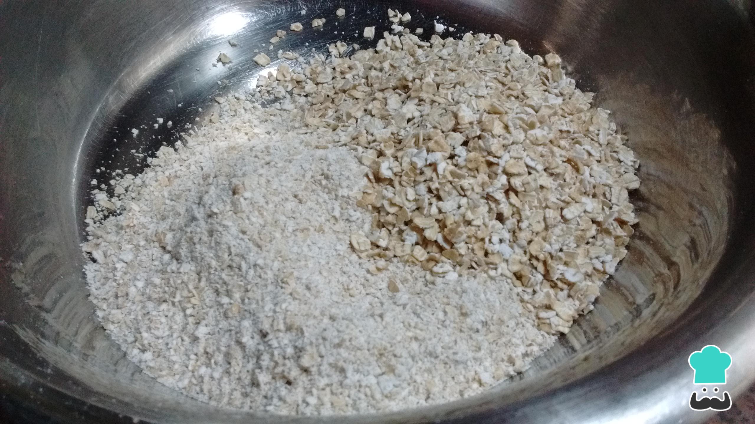 Para empezar con esta sencilla preparación, mezcla en un recipiente los ingredientes secos de esta receta, es decir, la harina de avena, los copos de avena y la pimienta. Puedes utilizar sal, pero la verdad es que estos panes son bien sabrosos y no será necesaria. También puedes combinar la pimienta con orégano o romero para hacerlos saborizados o bien evitarla para hacerlos dulces, agregando solo 1 cucharada de azúcar y pasas de uva.