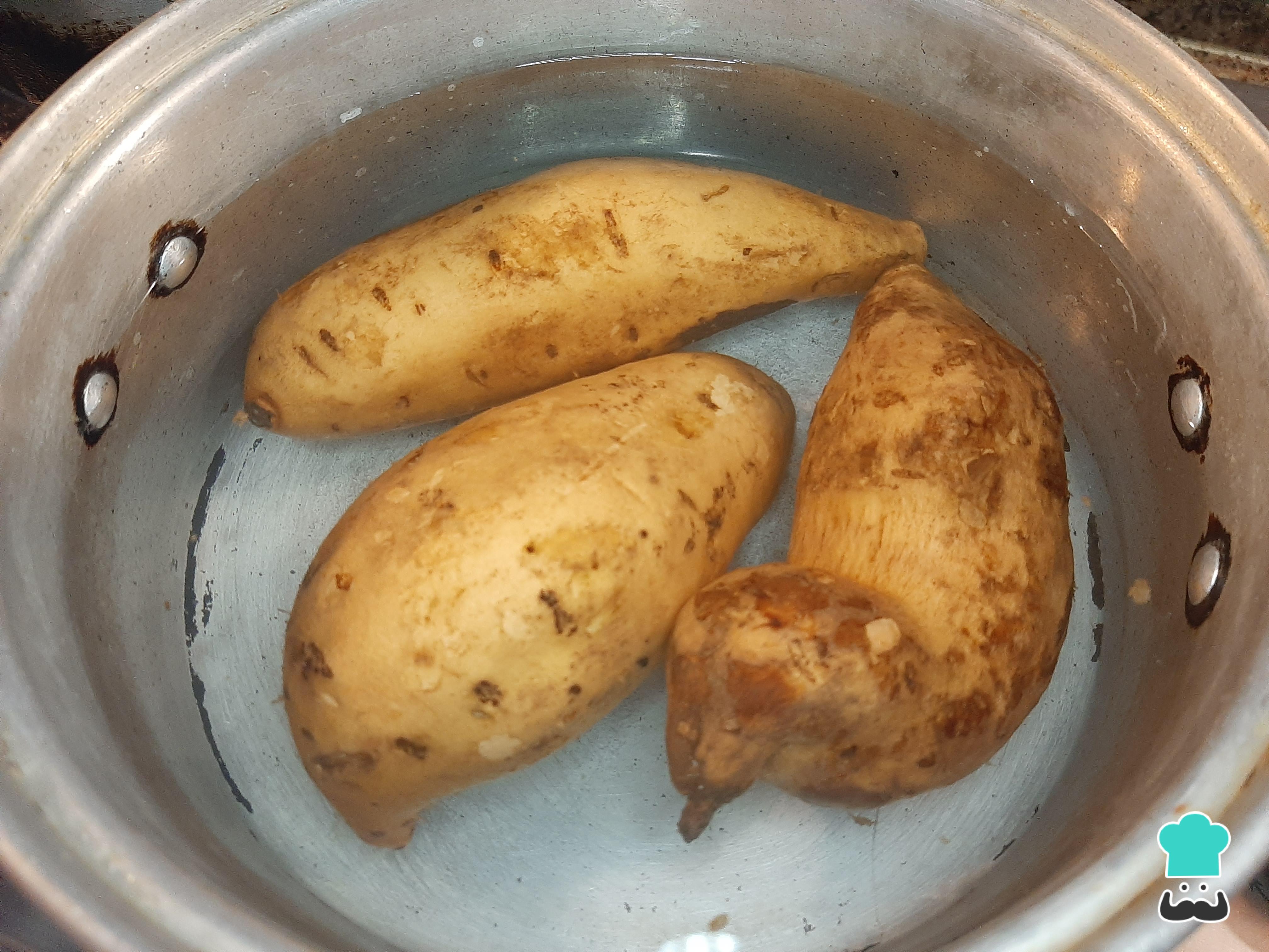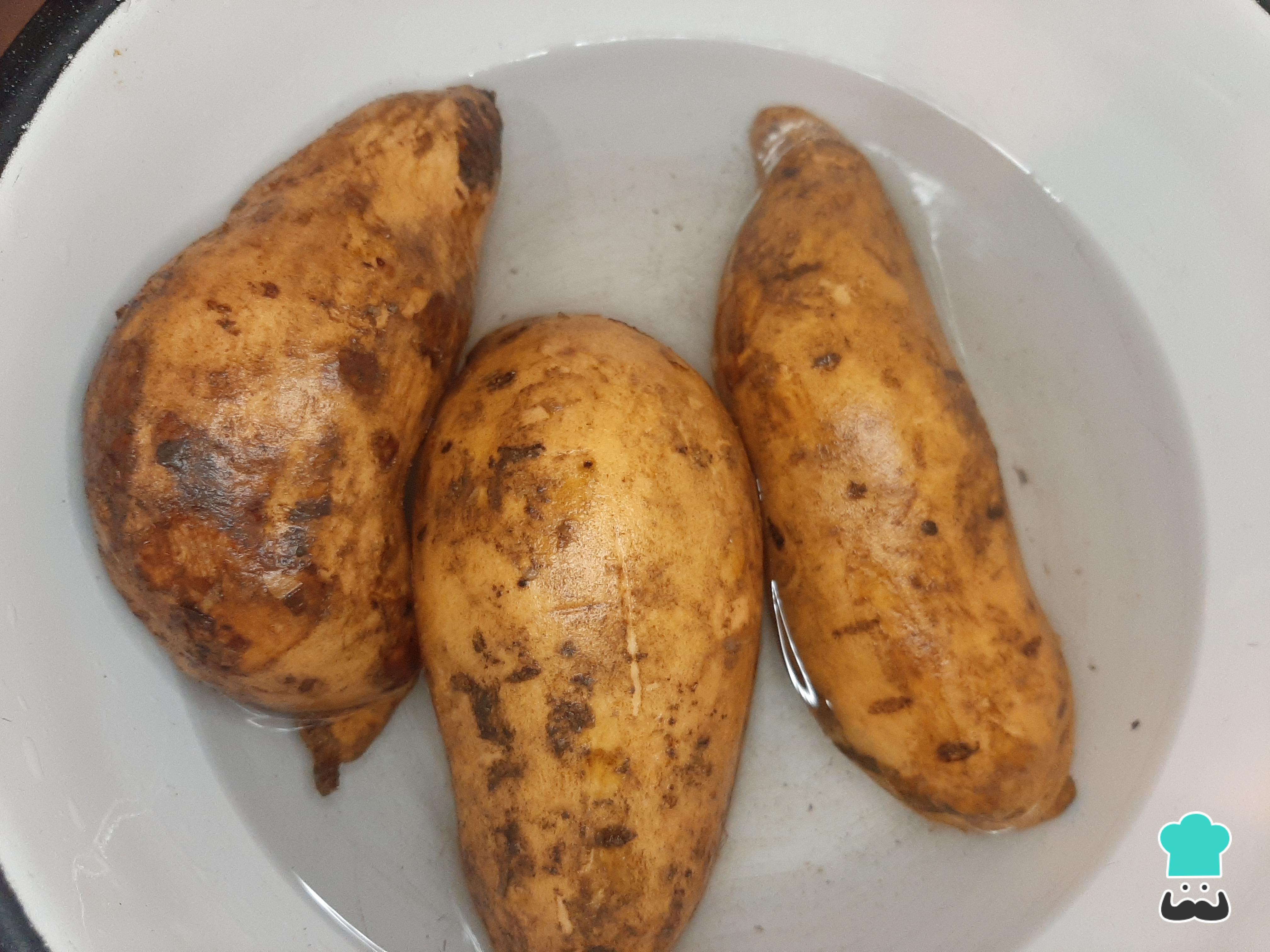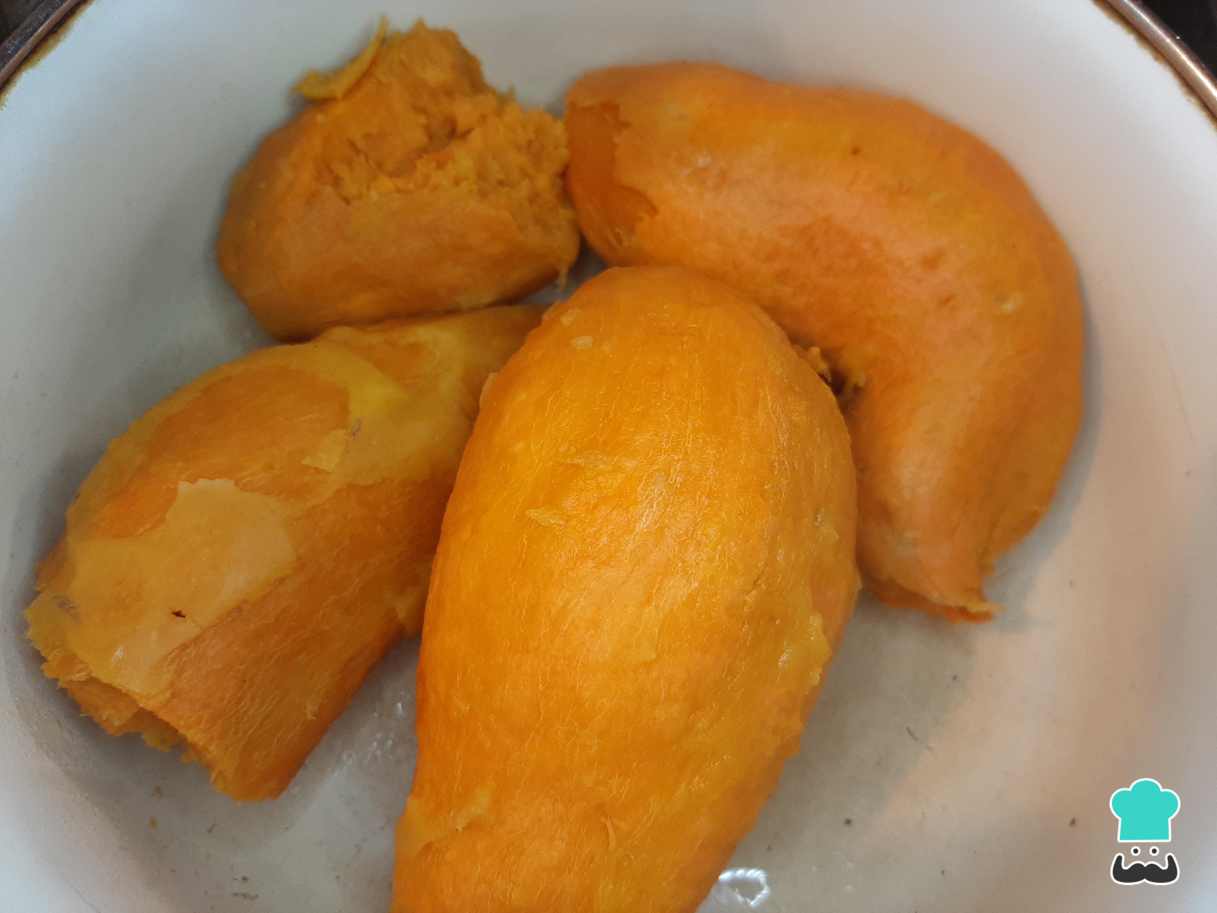 En una olla mediana con agua cocina los boniatos aproximadamente 15-20 minutos.