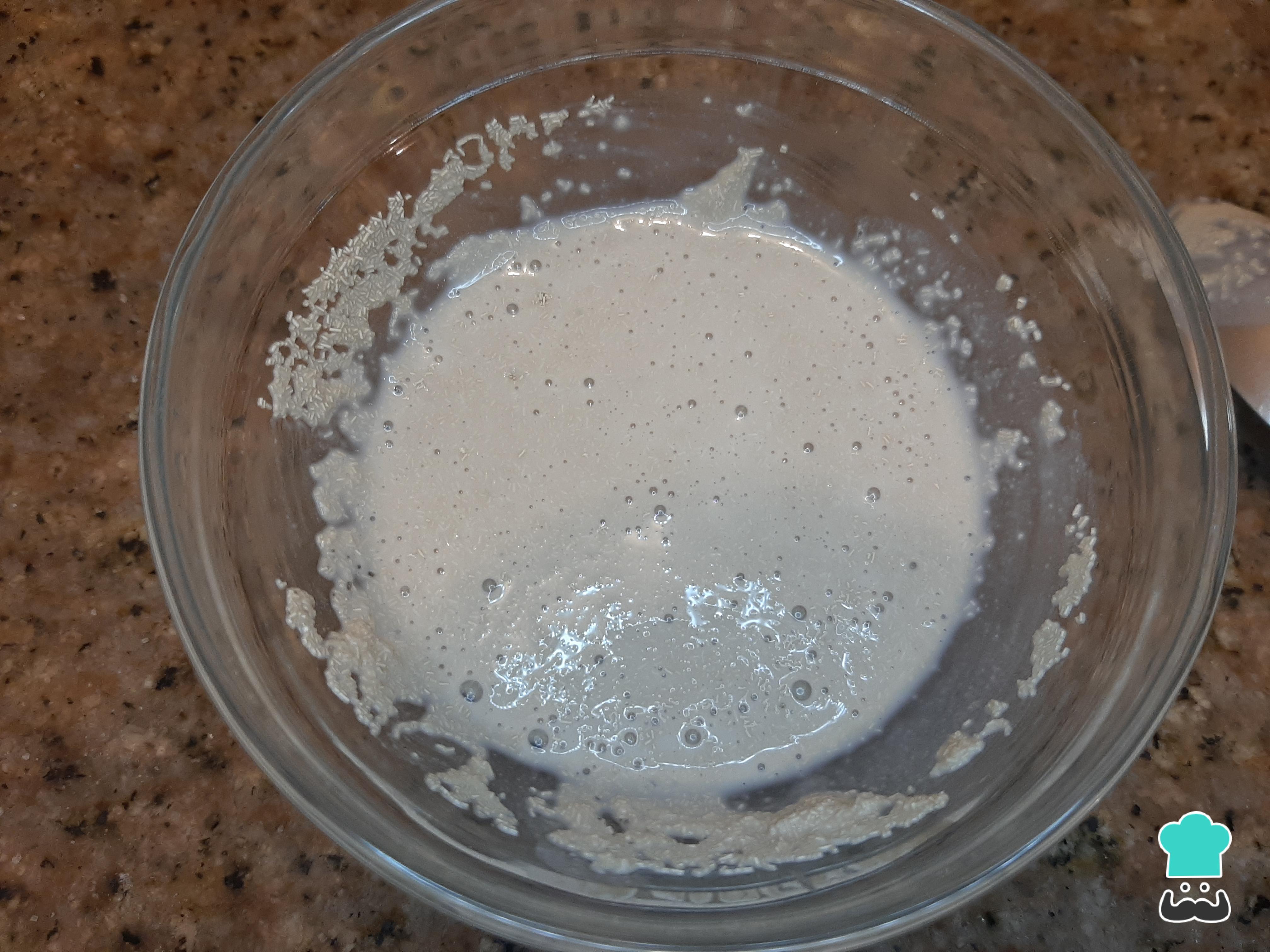 En otro bol pequeño diluye la levadura con un poco de leche y agrega una pizca de azúcar blanco.
