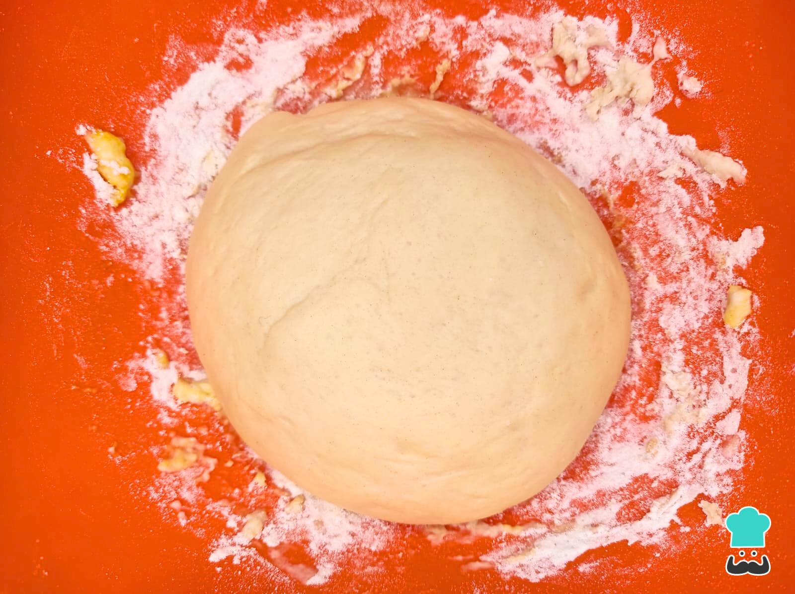Continúa integrando con las manos hasta obtener una masa lisa y manejable. Si resulta pegajosa, incorpora más harina. Traspasa a una superficie enharinada y amasa por al menos 10 minutos para desarrollar el gluten de la harina.