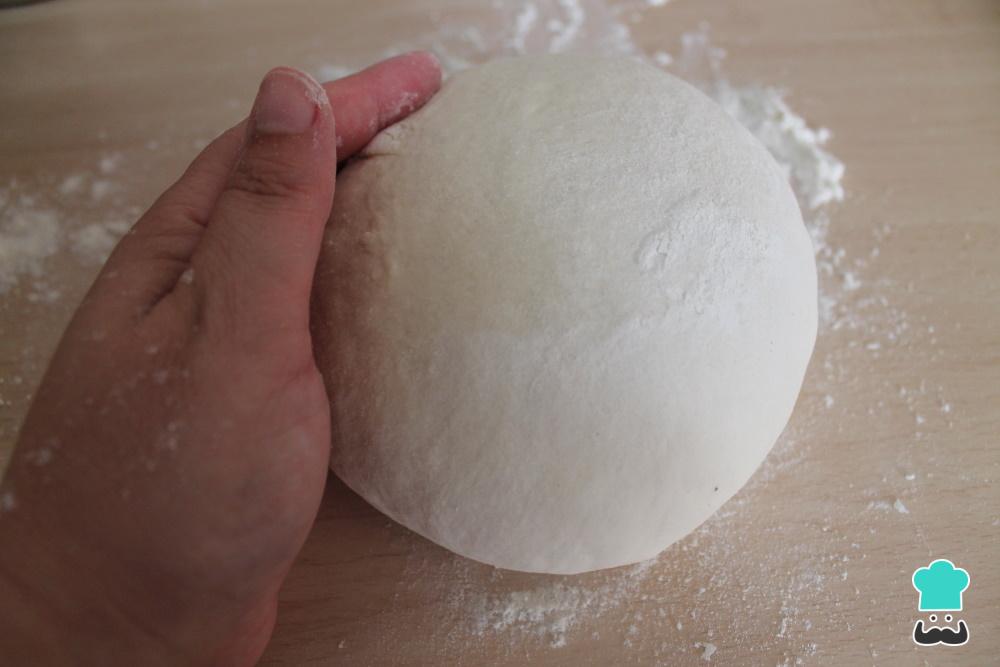 Dale la vuelta dejando los pliegues hacia abajo, pon las dos manos alrededor de la bola de pan y dale forma redondita. Tienes que poner las manos en la base de la bola de pan para que quede bien redonda.