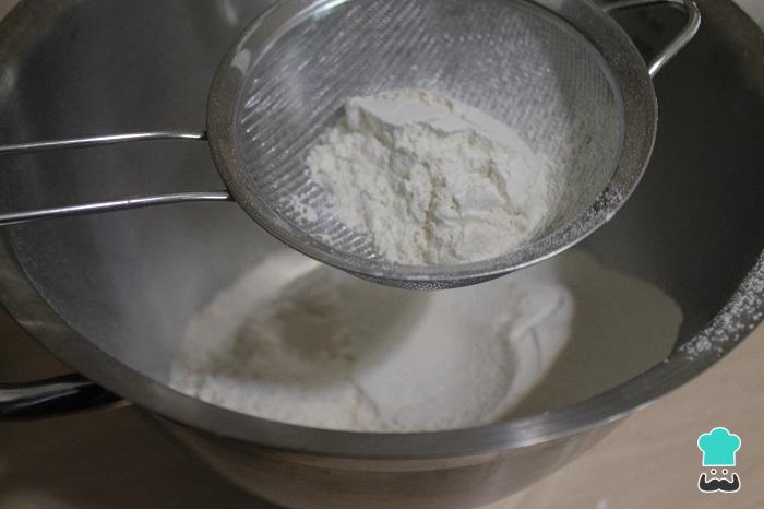 Para hacer nuestros panecillos de queso es importante que primero tamicemos la harina, ya que así quedarán unos panes caseros más tiernos.