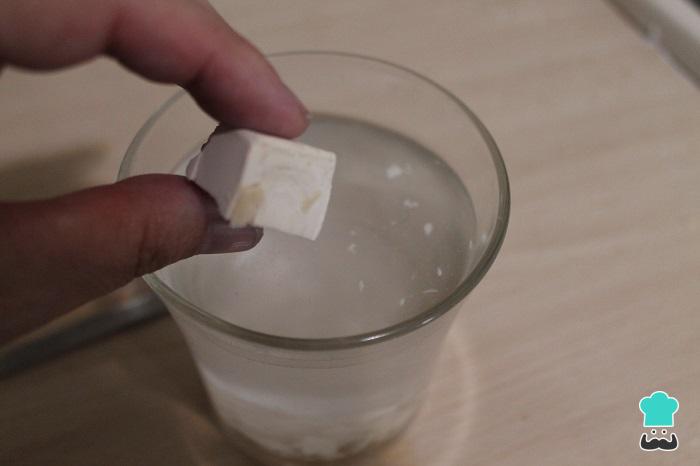 Seguidamente, vamos a diluir la levadura fresca en el agua tibia.