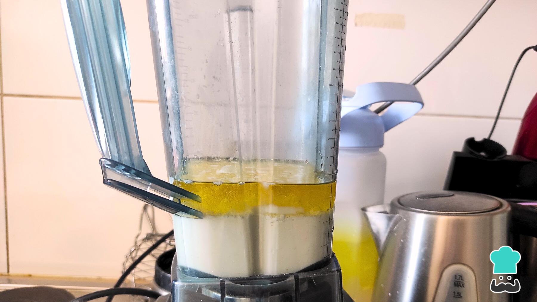 En la licuadora añade los huevos, el aceite y la leche. Tritura.
