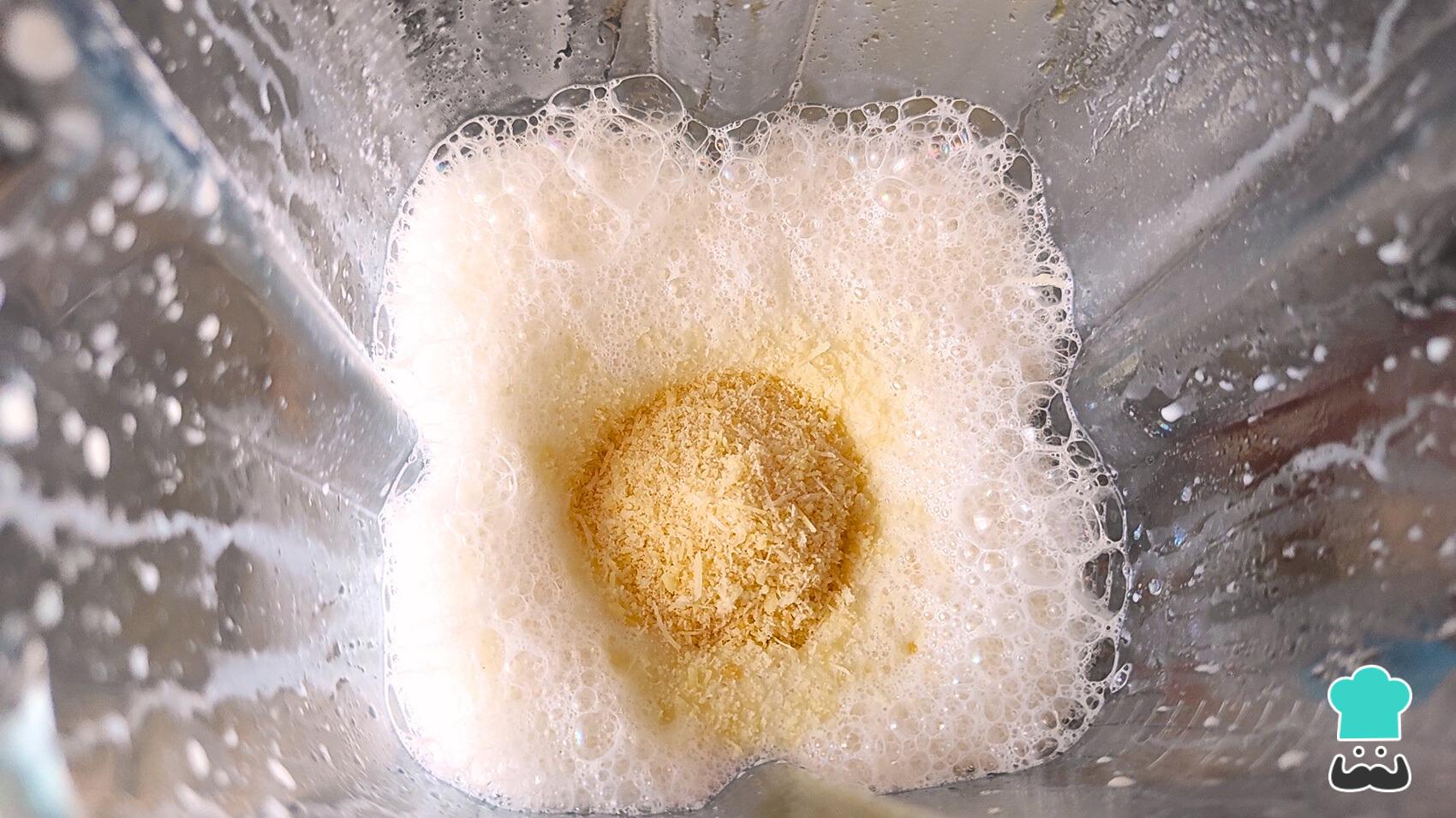 Incorpora el queso parmesano rallado junto a la sal y tritura nuevamente.