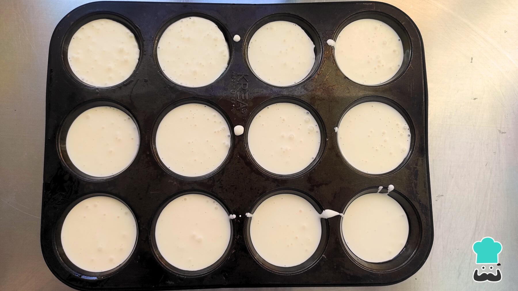 Engrasa un molde para cupcakes y rellena cada espacio hasta 3/4 de su capacidad. Lleva al horno previamente precalentado a 180 °C.