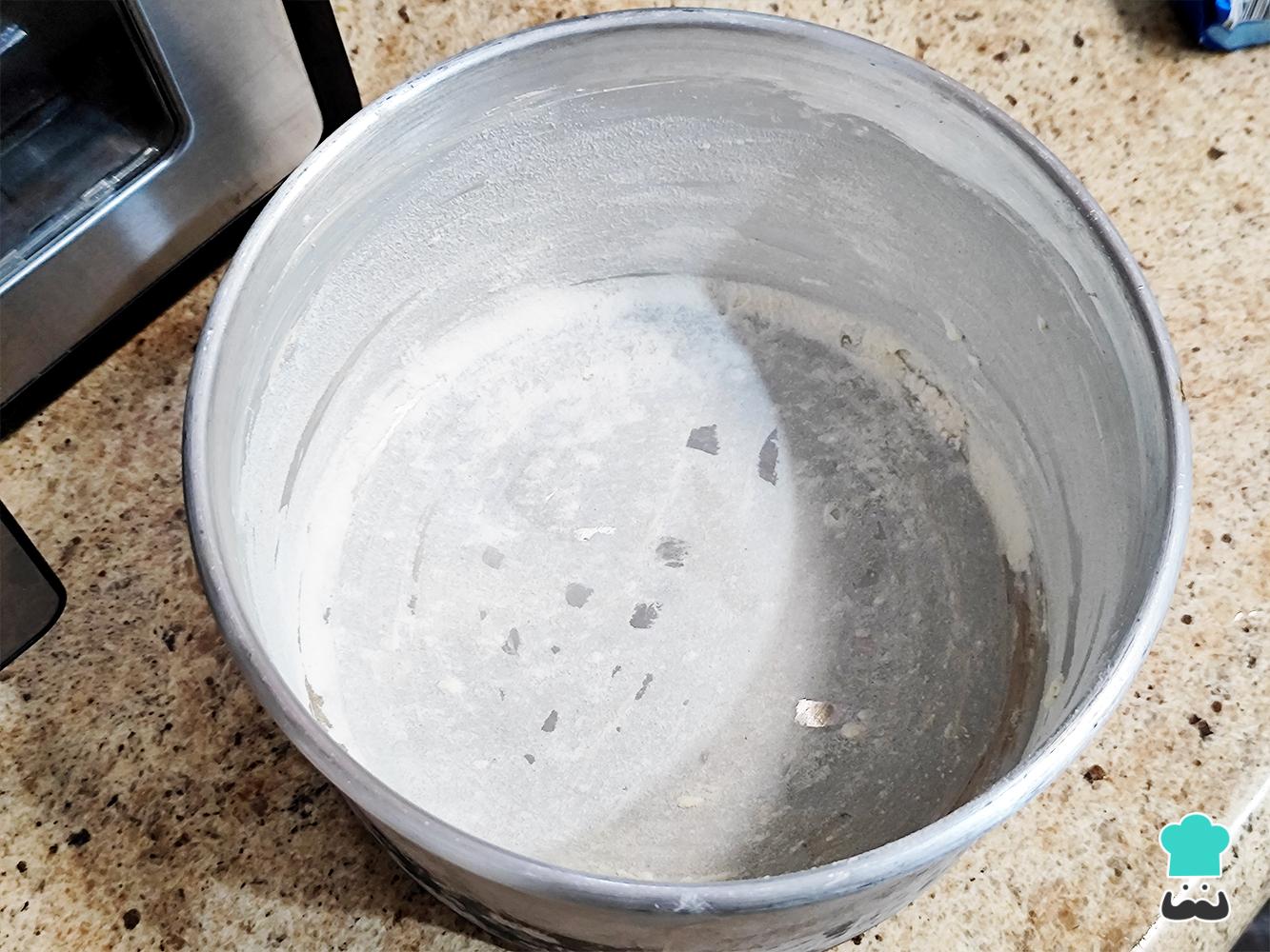 Precalienta el horno a 180 °C y engrasa un molde con mantequilla y harina o papel encerado.