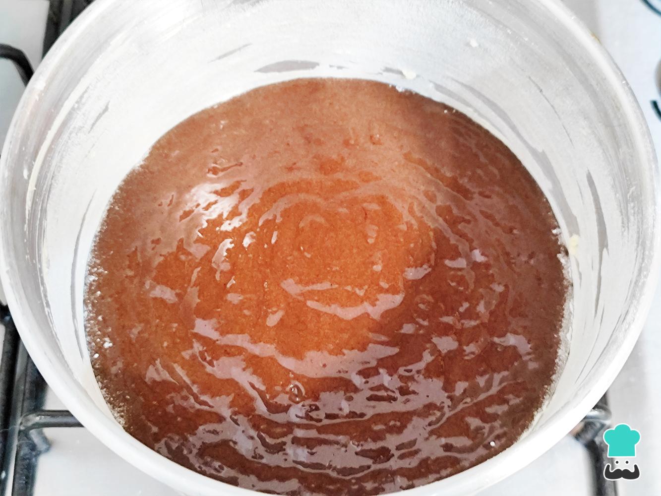 Cuando tengas una mezcla espesa, tamiza la harina, el cacao, el polvo para hornear, el bicarbonato y la sal. Esto ayuda a lograr una textura más ligera y uniforme.