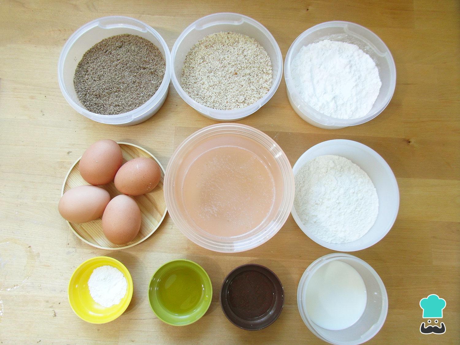 Para hacer esta receta de pan paleo sin gluten primero tenemos que reunir los ingredientes. En este caso opté por usar harina de linaza (o lino) marrón, pero también se puede utilizar linaza dorada.