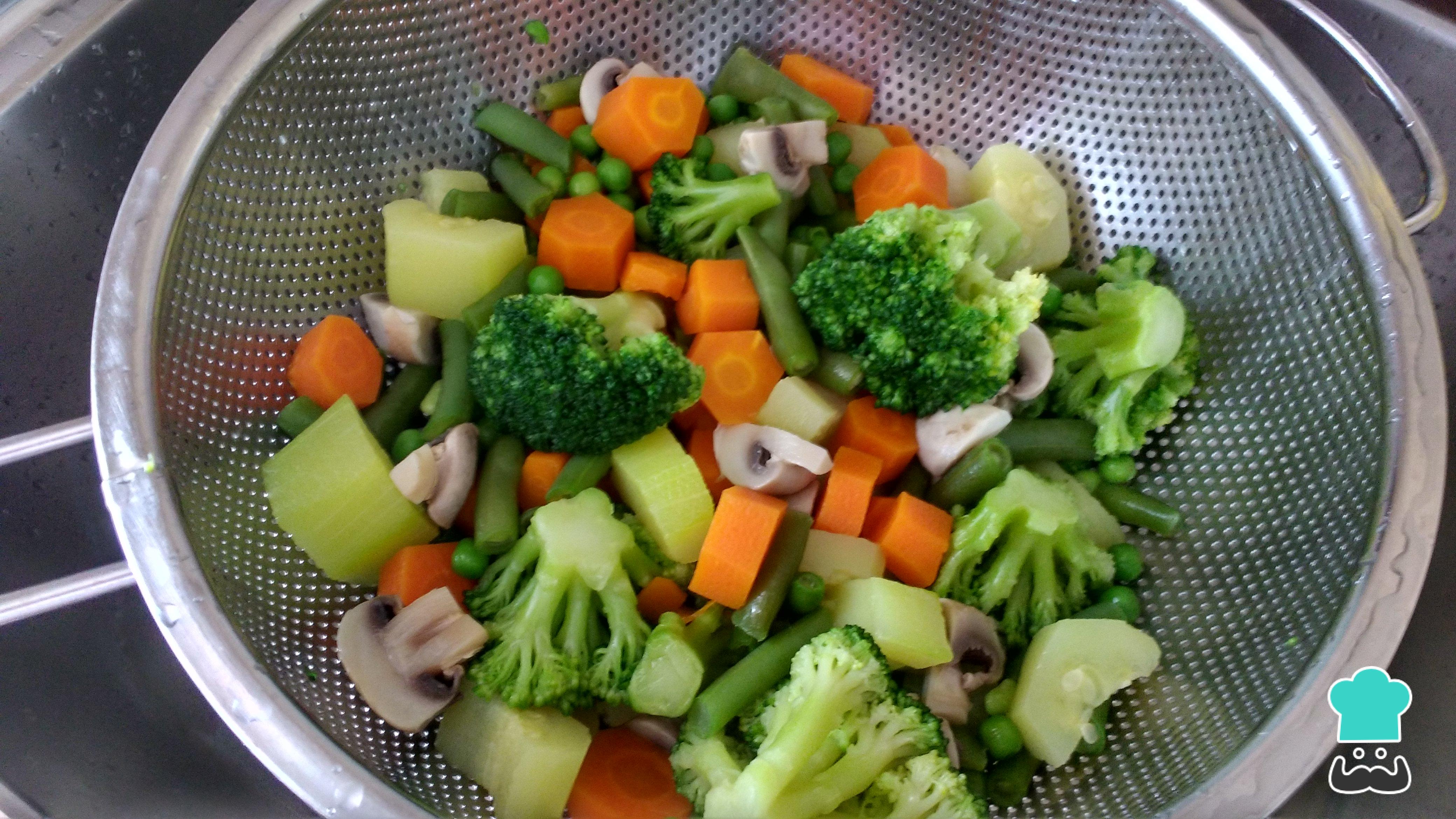 Una vez cocidas, escurrimos las verduras para que quede la menor agua posible. Si es necesario las colocamos sobre papel secante.