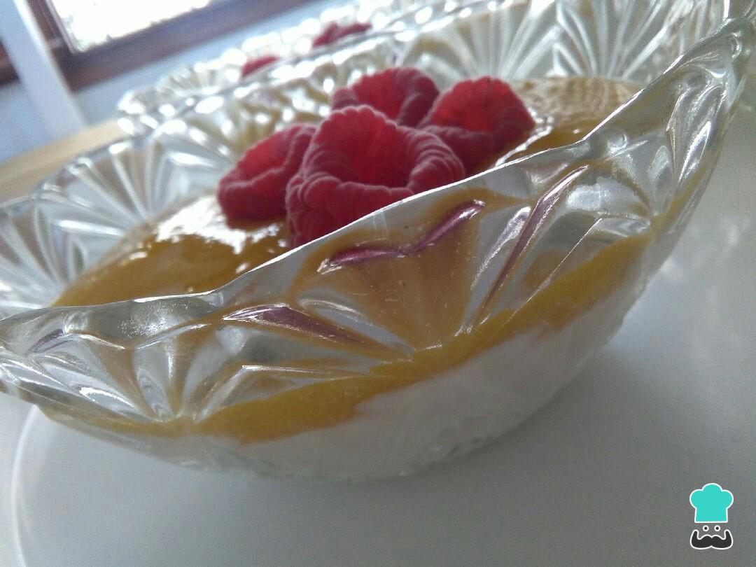 Disfruta de esta deliciosa receta de panacota con mango y decorada con frambuesas que nos ha traído Amada_sin_n desde la app de RecetasGratis para que todos podamos disfrutar de este postre de tan famoso y rico que no cuesta tanto de hacer. ¡Anímate y sigue leyendo el paso a paso indicado a continuación!