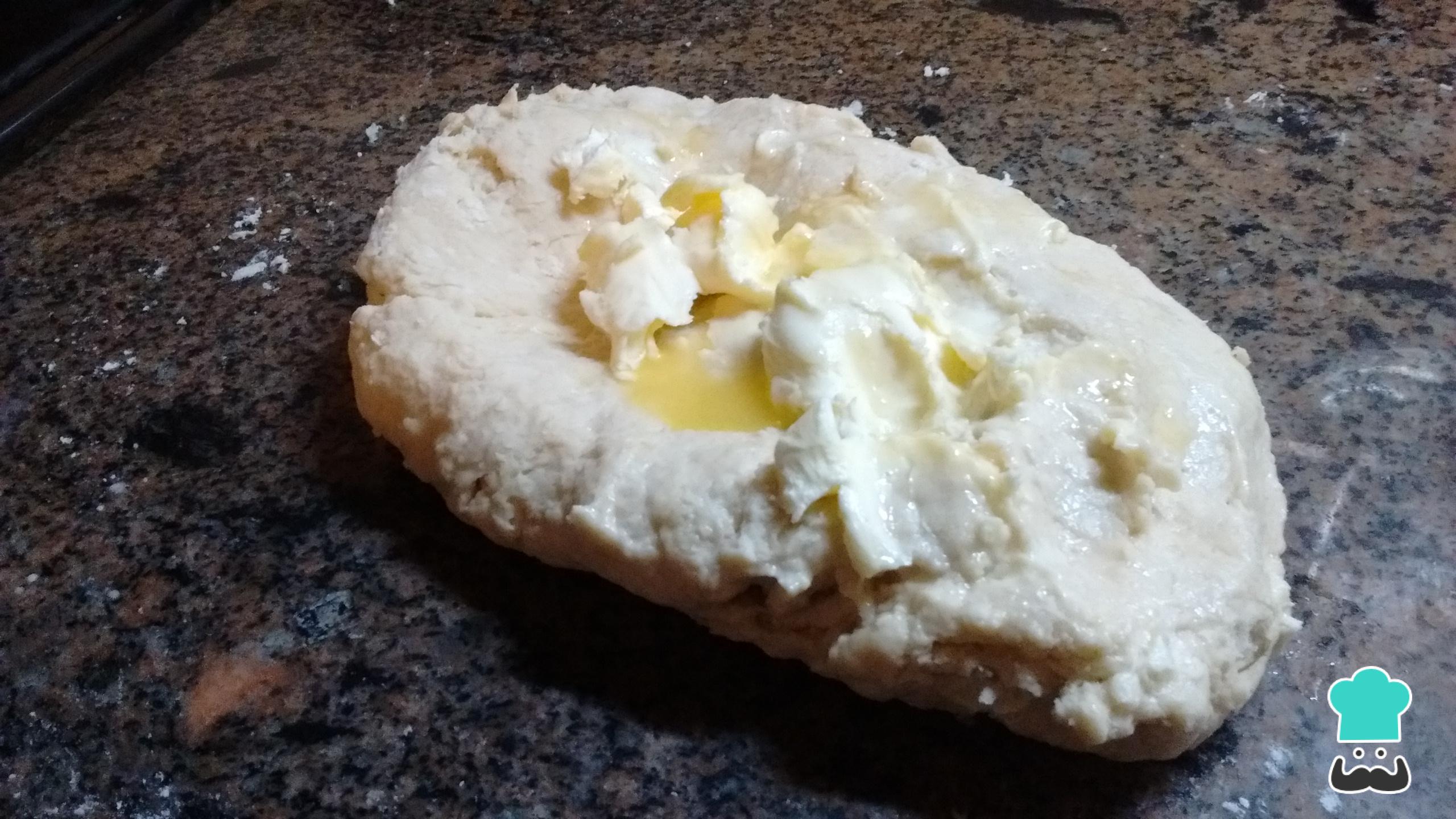 Lleva tu masa a una mesada limpia y agrega la manteca blanda. Amasa unos 5 minutos hasta que esté completamente integrada.