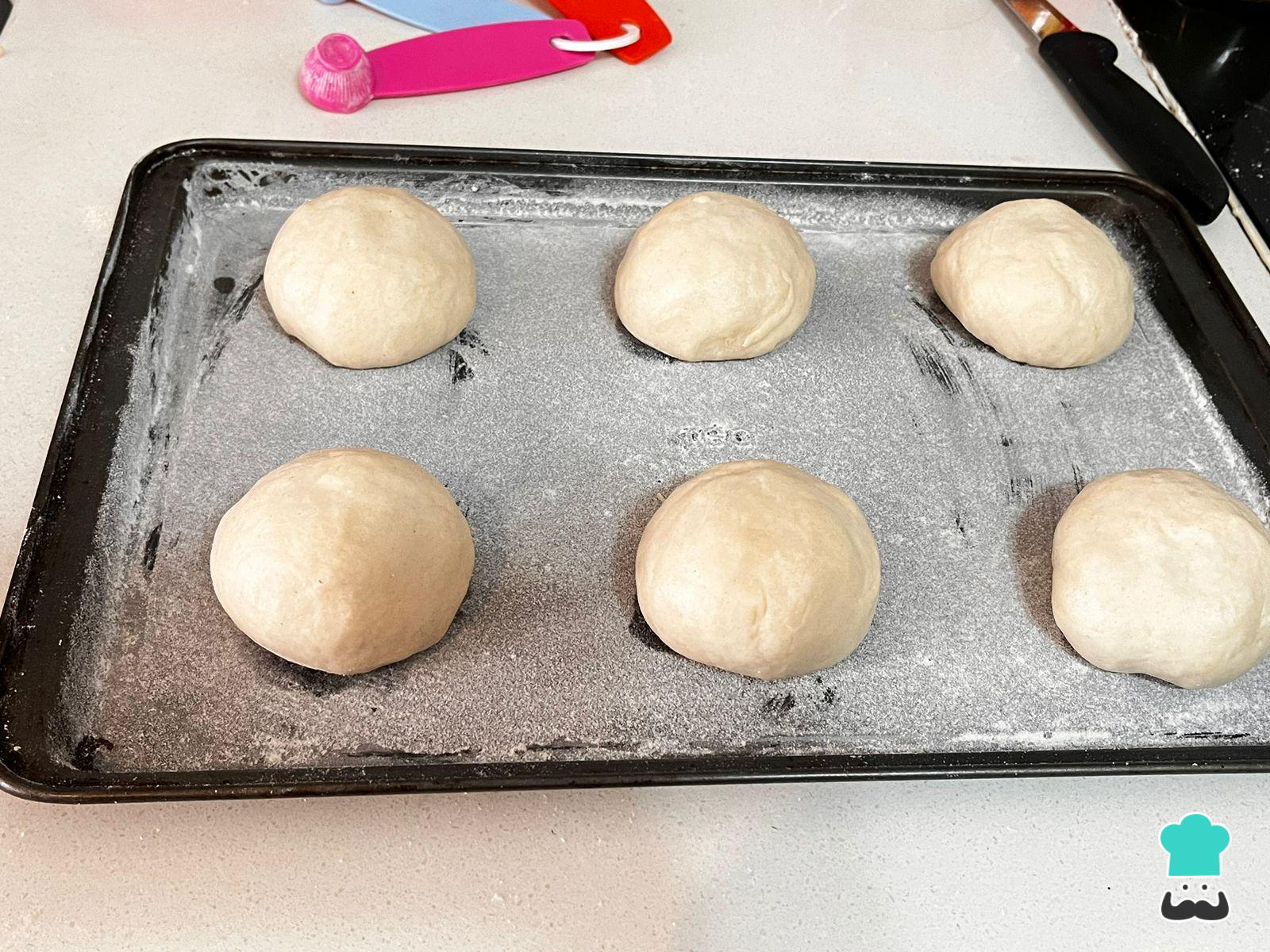 Enharina una bandeja y coloca los bollos de pan.