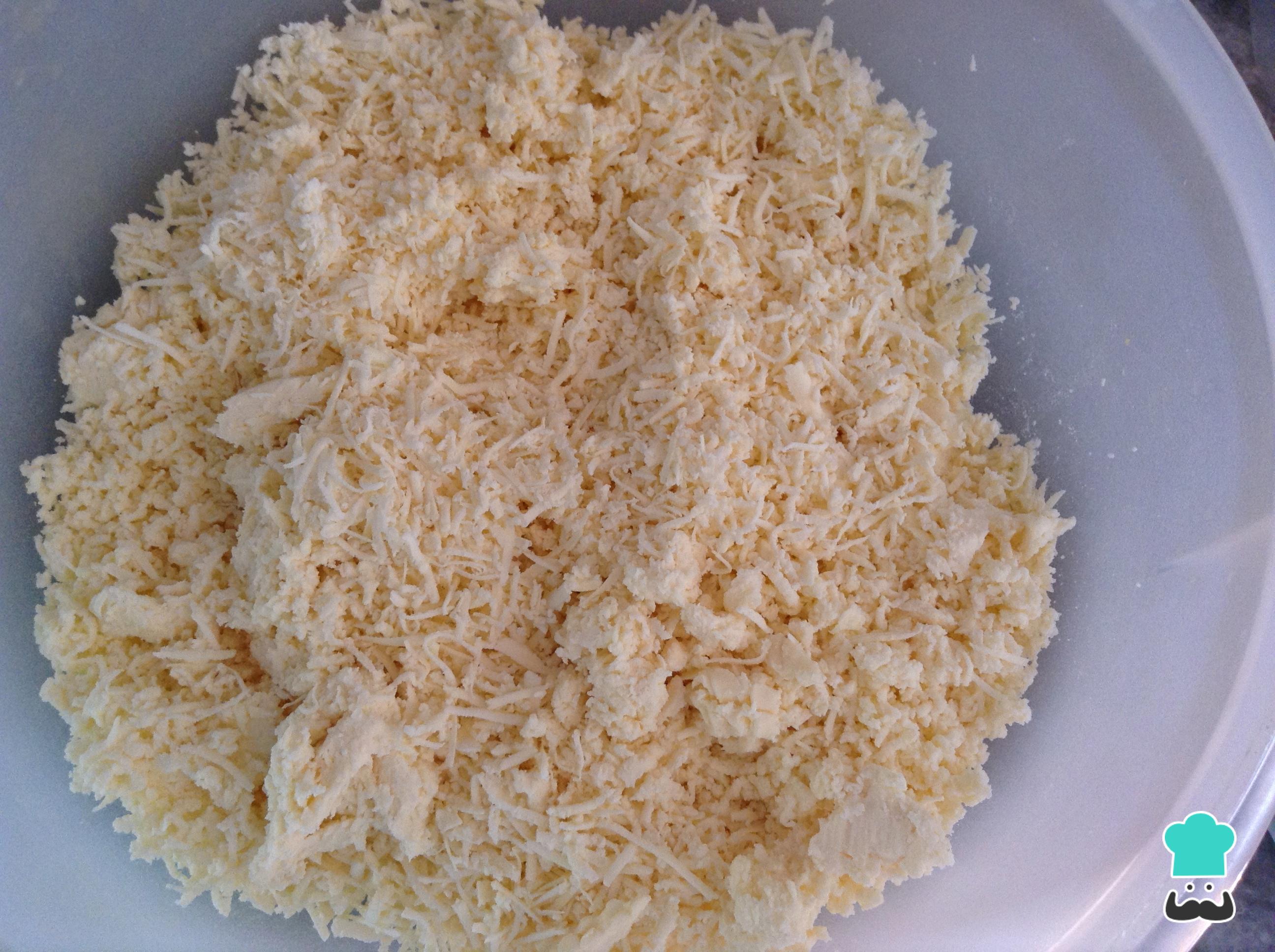 Hola Nelly la harina de yuca de yuca va en el paso dos, se mezcla con los quesos rallados, no me di cuenta que se me olvido mencionarlo, la harina de yuca es el ingredientes principal de esta preparación saludos.