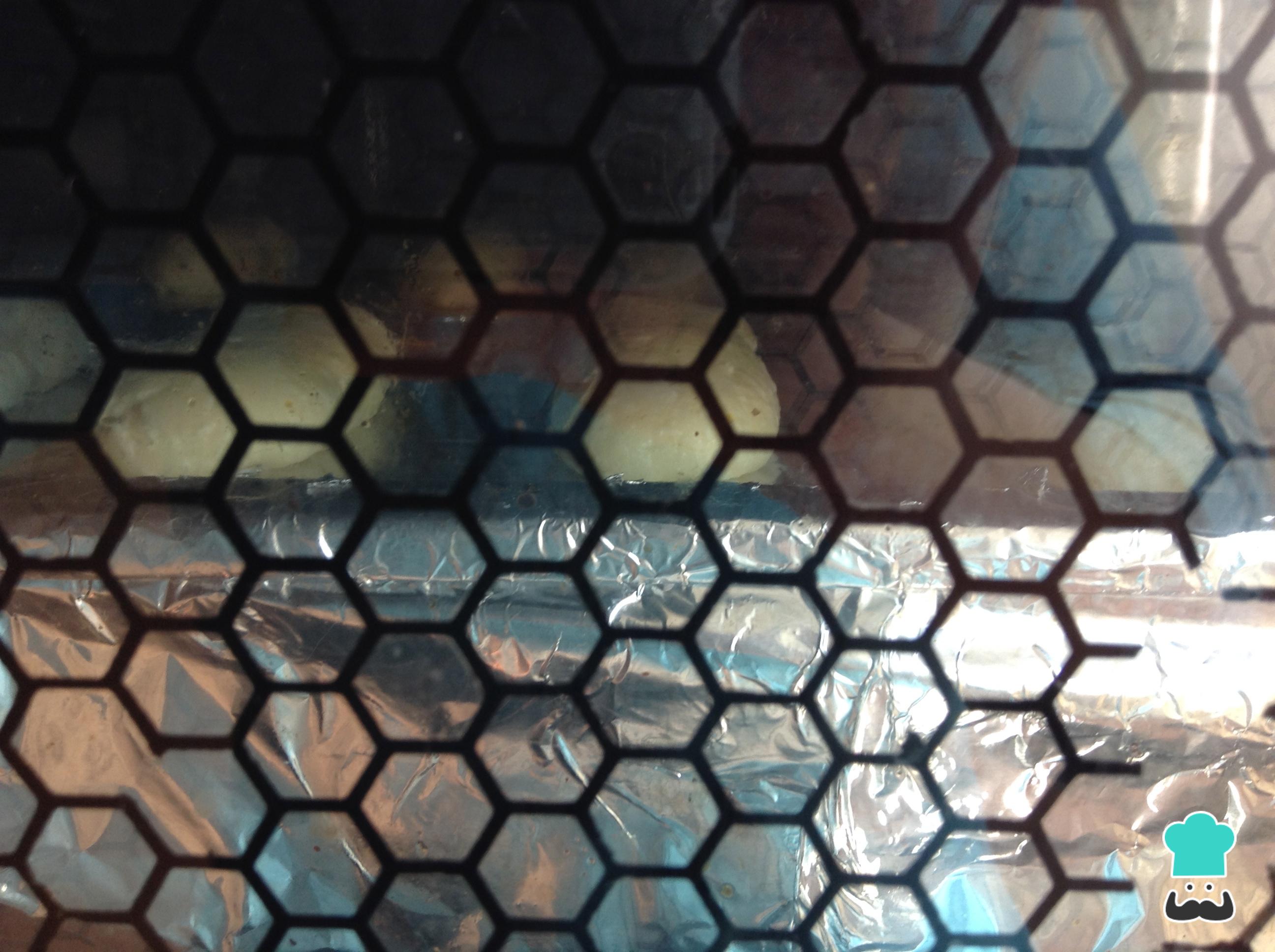 Llevar al horno a una temperatura de 300 grados centígrados aproximadamente evitado abrir el horno ( trate de realizar la foto lo mejor posible mostrando el procedimiento cuando se horneaban).Una vez crezcan los pandeyucas y esten dorados por fuera retirar del fuego y reservar.