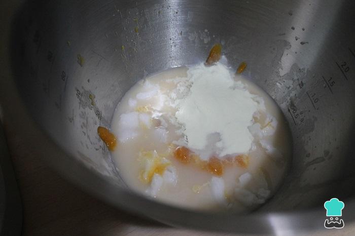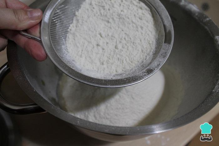Tamiza la harina sobre el compuesto anterior. Amasa durante 10 minutos, con las manos o en amasadora para seguir con la receta de panecillos de calabaza.
