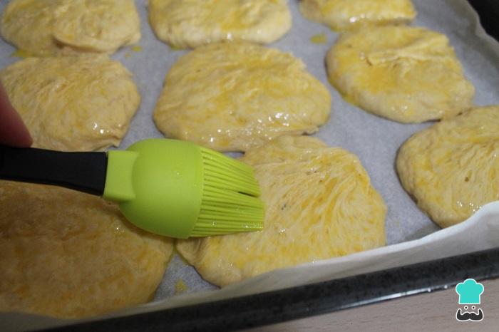 Precalienta el horno a 180 ºC. Bate el huevo y pincela los bollos de calabaza con él.