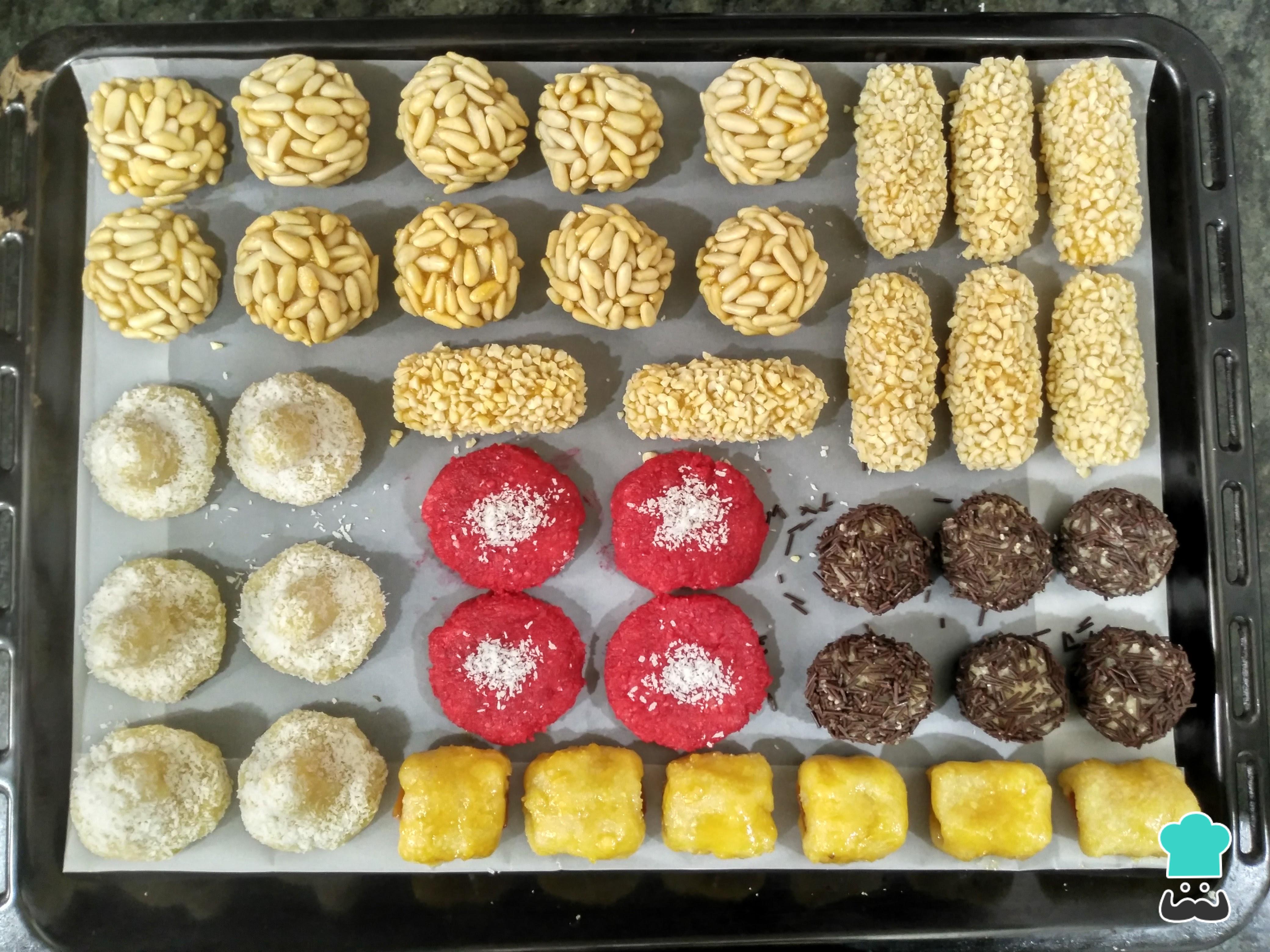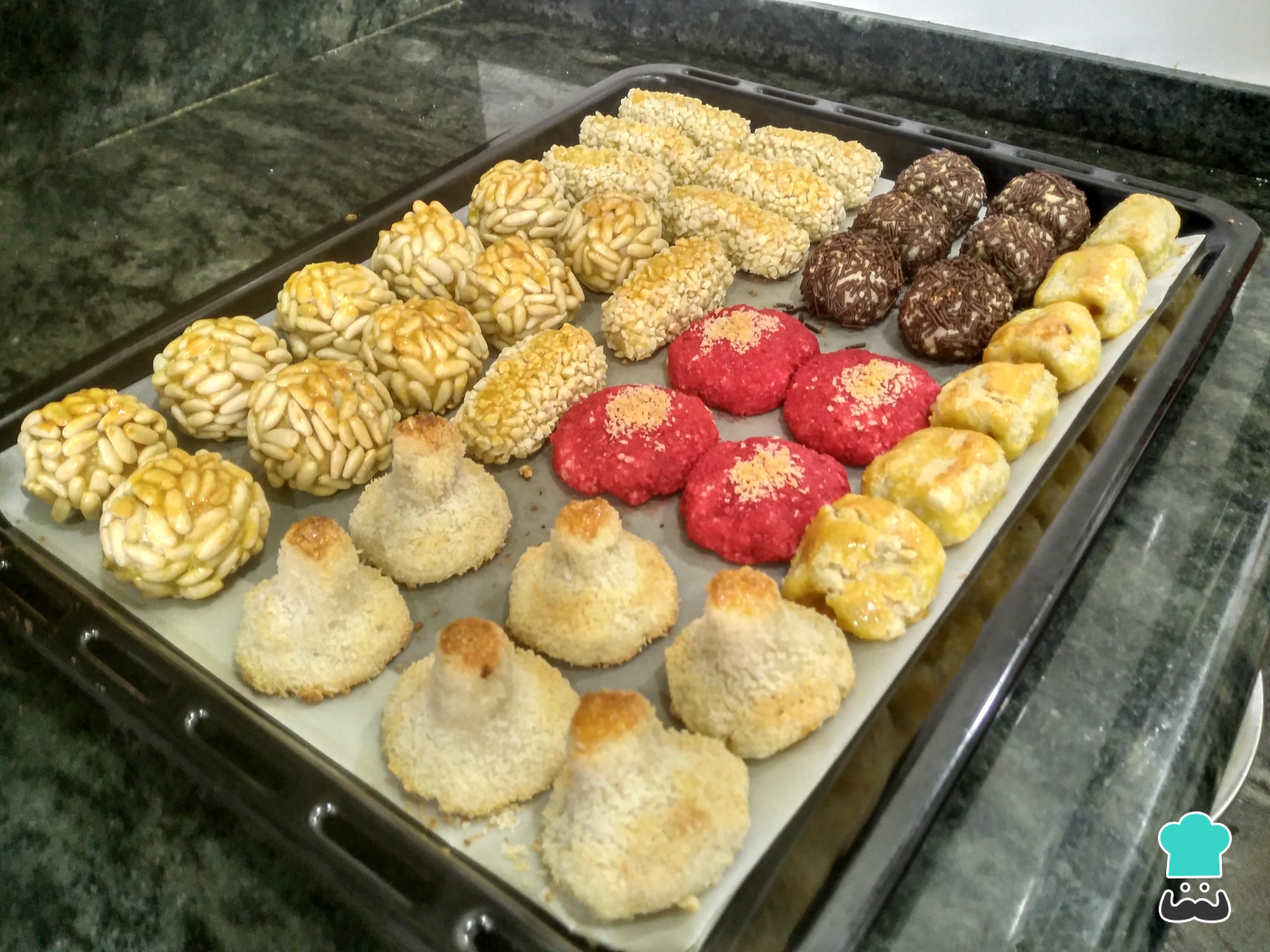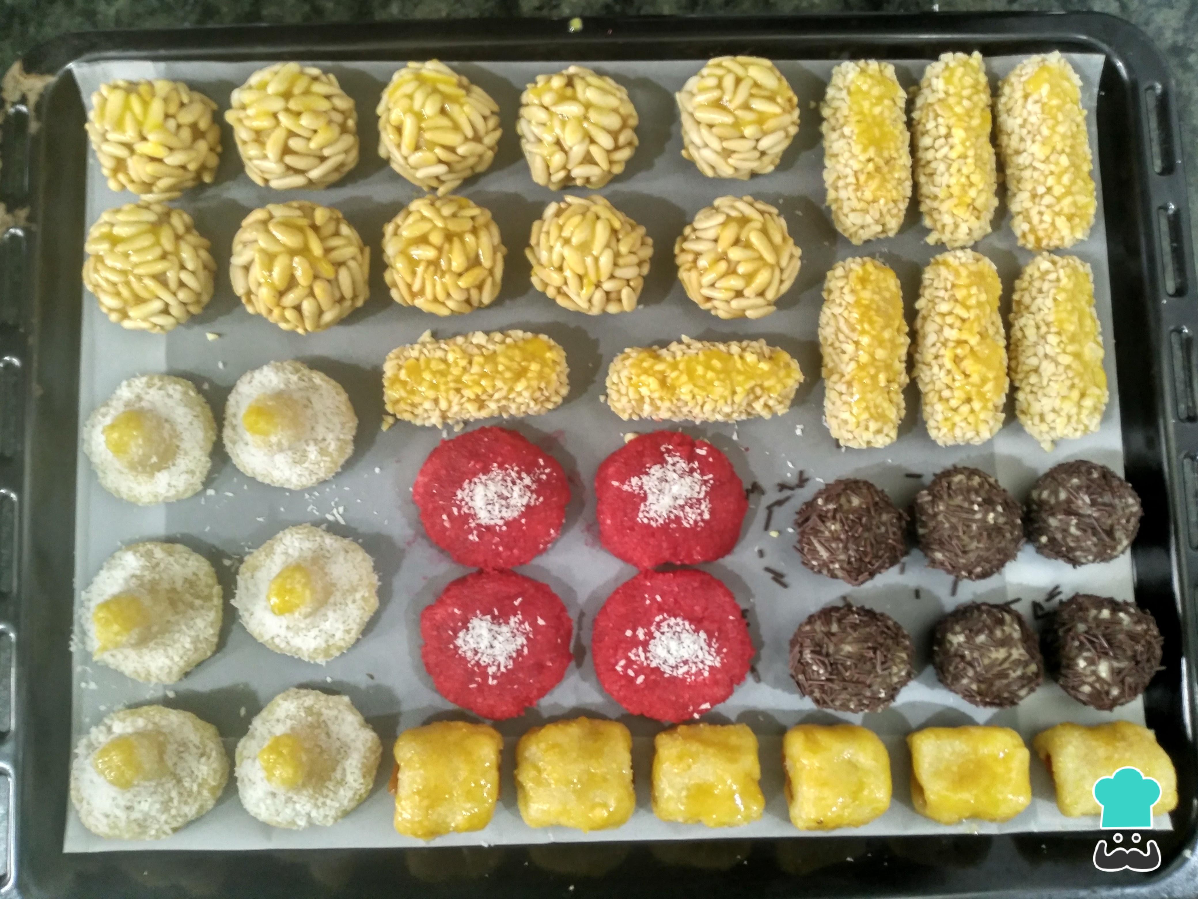 Receta de Panellets variados de patata- ¡De piñones, almendras, chocolate, coco y fresa!