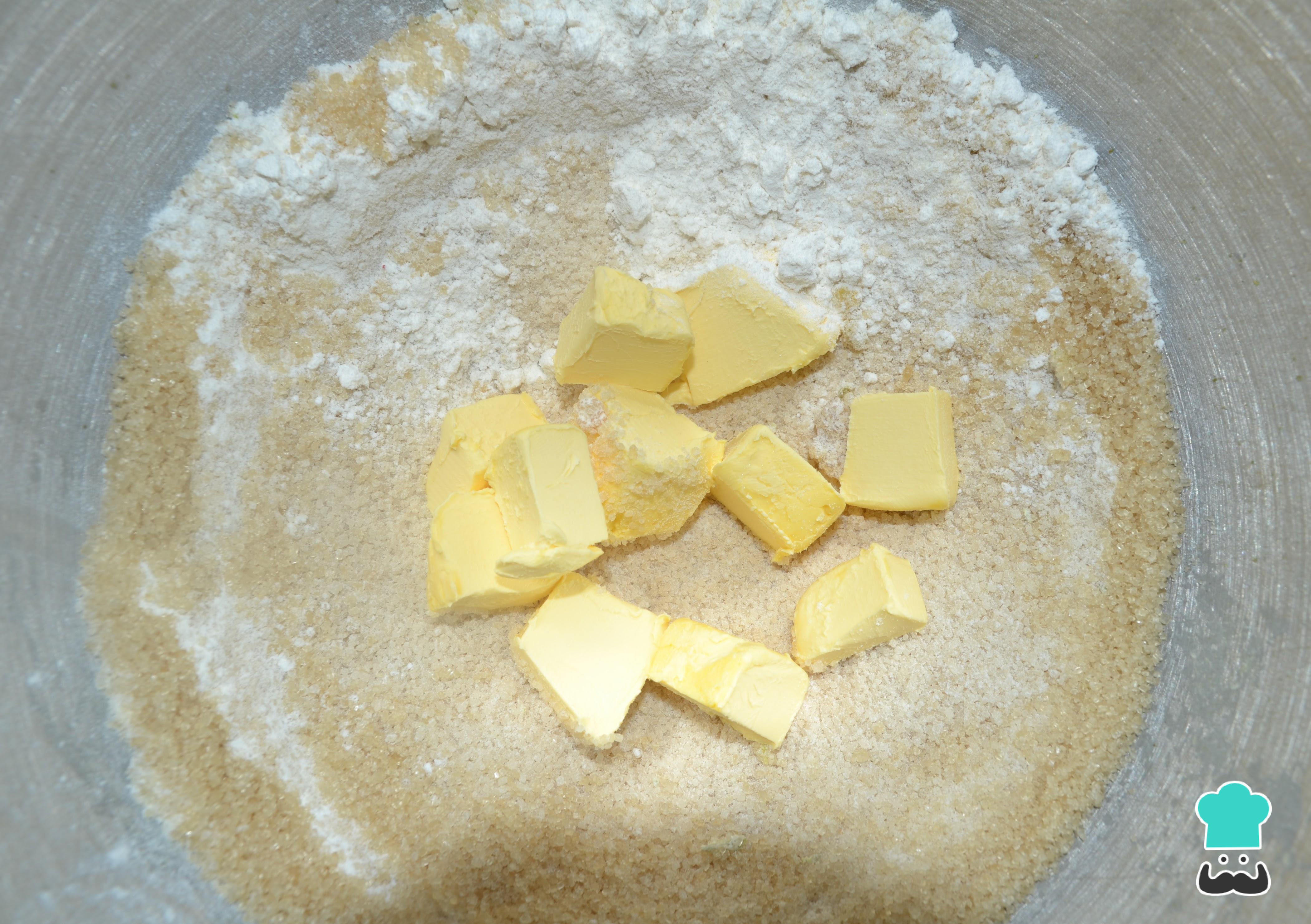 Incorpora la mantequilla sin sal en cuadrados para que pueda mezclarse mejor.