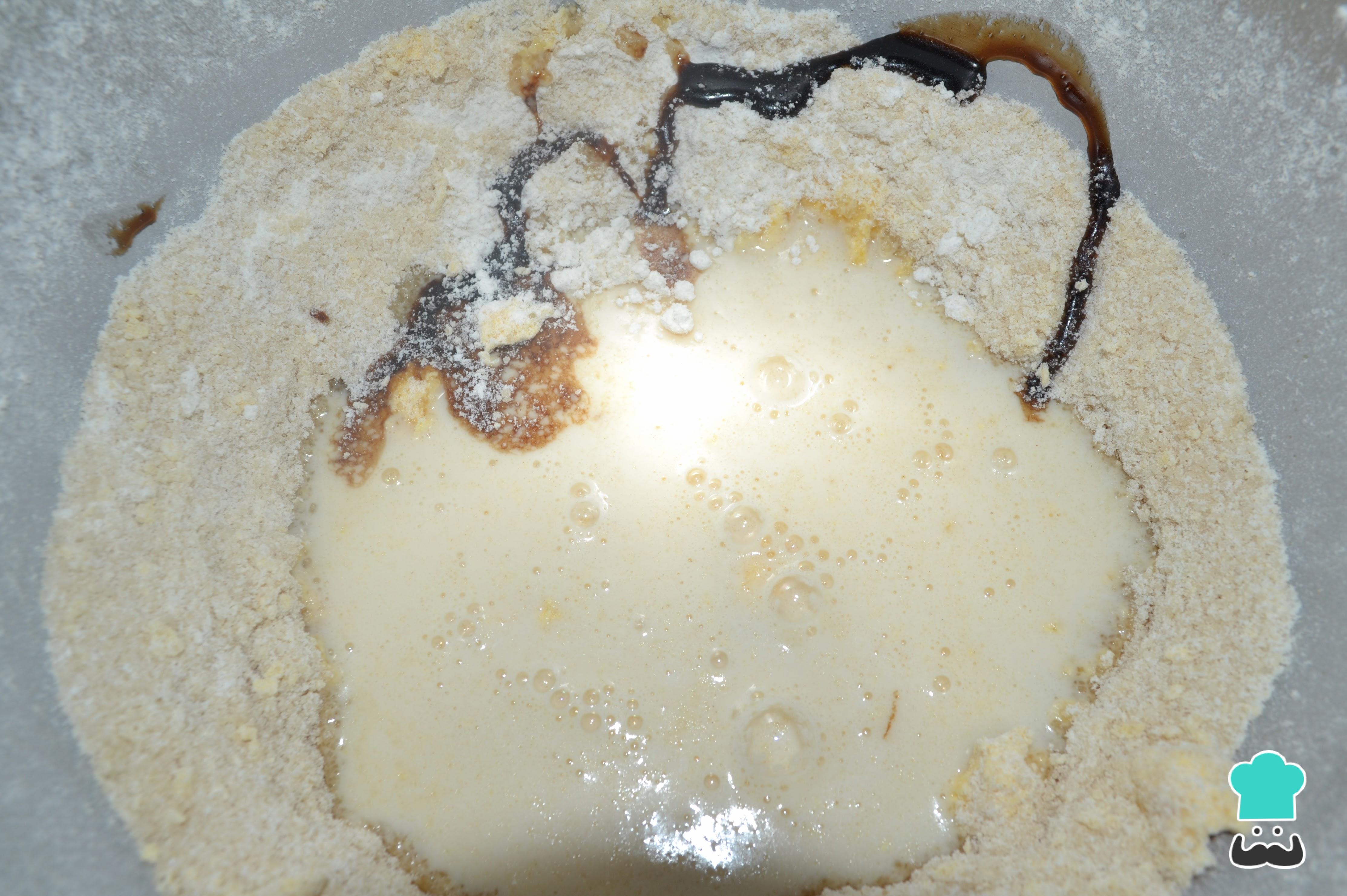 Cuando la mantequilla se encuentre integrada, coloca en el fondo la leche a temperatura ambiente y el chorro de esencia de vainilla.