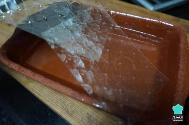 Para empezar con la receta de panna cotta de chocolate fácil, primero debes hidratar las hojas de gelatina. A continuación, colócalas en un bol cubiertas con agua fría durante 10 minutos.