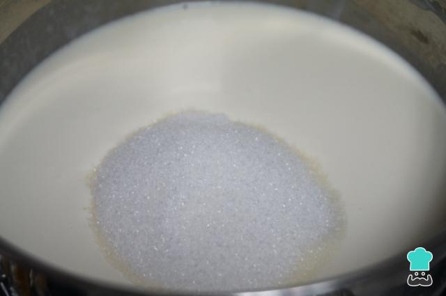 Por otro lado, pondremos en un cazo la nata y el azúcar a calentar a fuego suave, iremos dando vueltas para que se disuelva el azúcar. Cuando esté apagamos, reservamos.