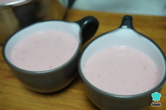 Pondremos la crema de fresas en vasitos o en moldes para servir. Metemos los moldes en la nevera, los tendremos unas 3-4 horas o de un día para otro, así cogerá más sabor.