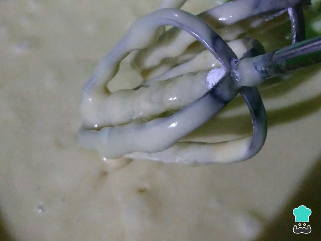 Puedes batir a mano o usar unas varillas eléctricas. Recuerda que la masa debe quedar suave y uniforme.