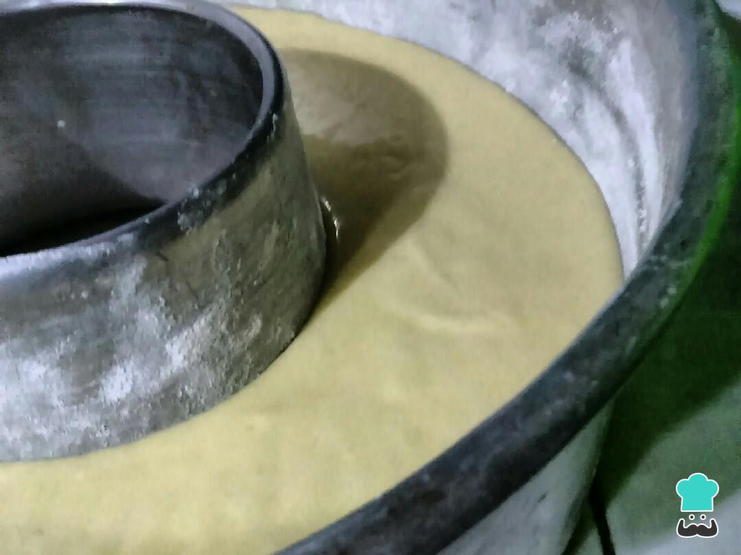 Vacía la mezcla en un molde para panque casera, recordando poner antes un poco de manteca y harina en tu recipiente para que no se pegue el bizcocho al desmoldarlo.