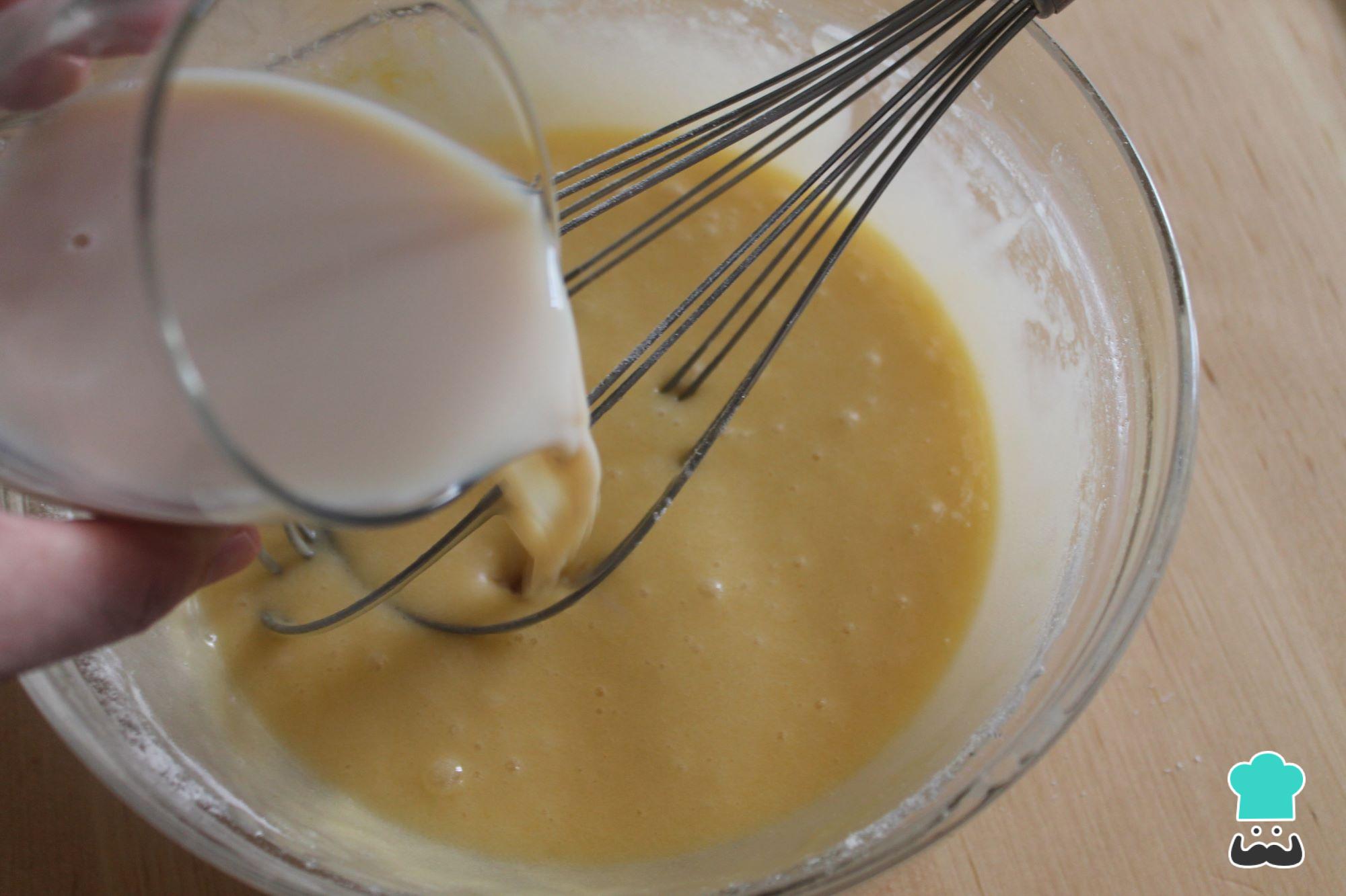 Por último, añade la otra mitad de la harina y la otra mitad de la leche y mezcla con el batidor, ya sea manual o eléctrico.