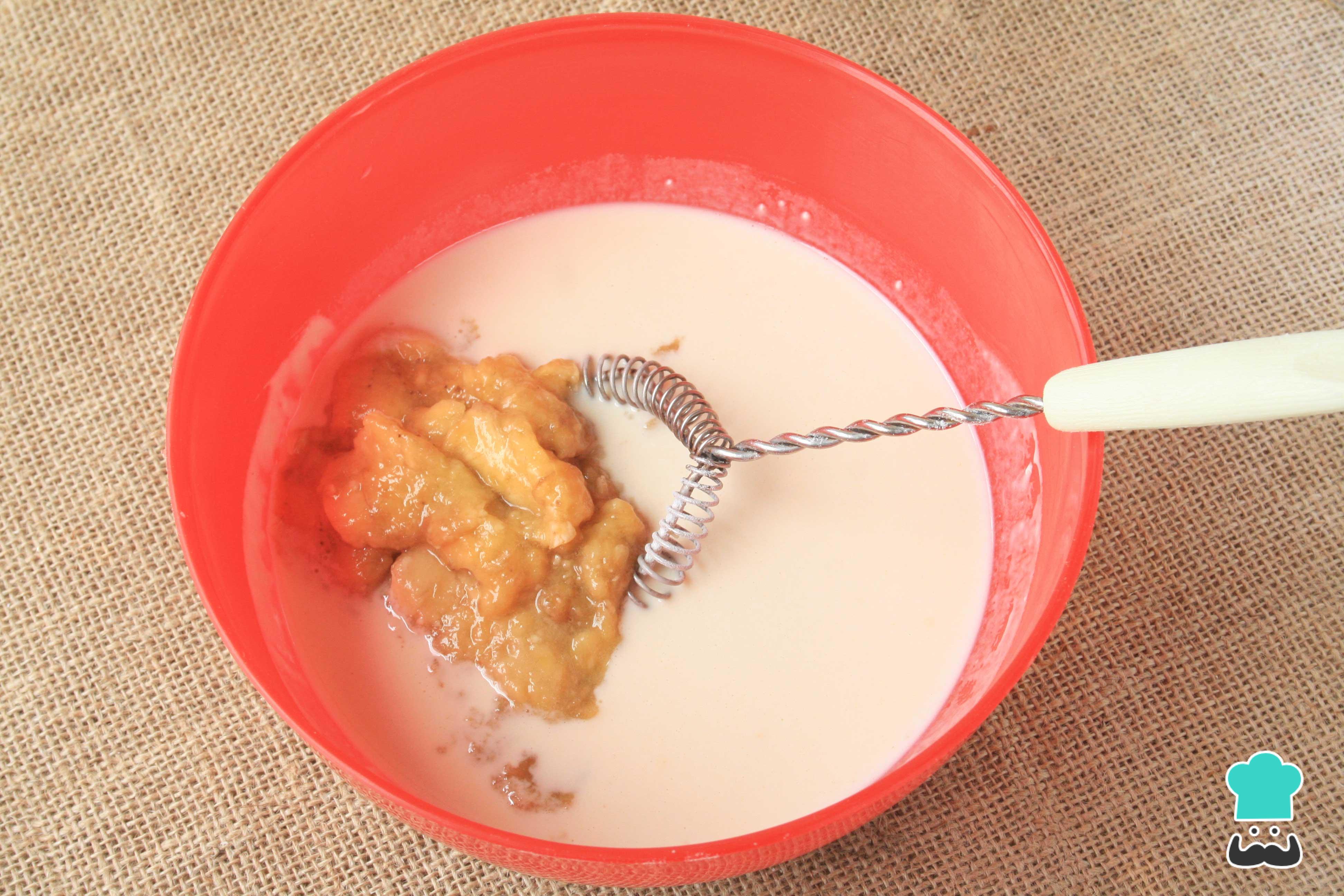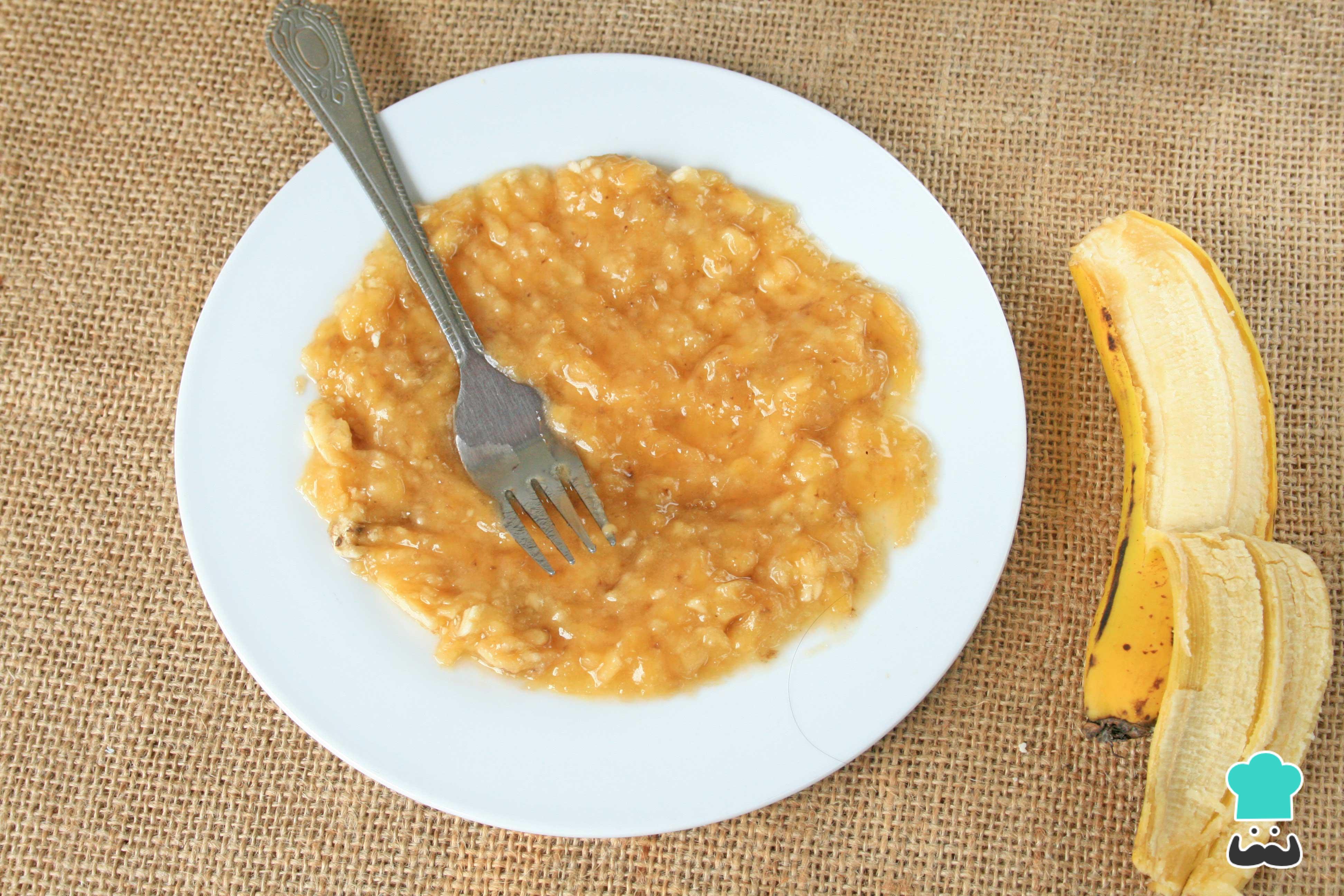 Por último, añade el plátano triturado a la preparación. Mezcla hasta lograr una masa de consistencia pareja.