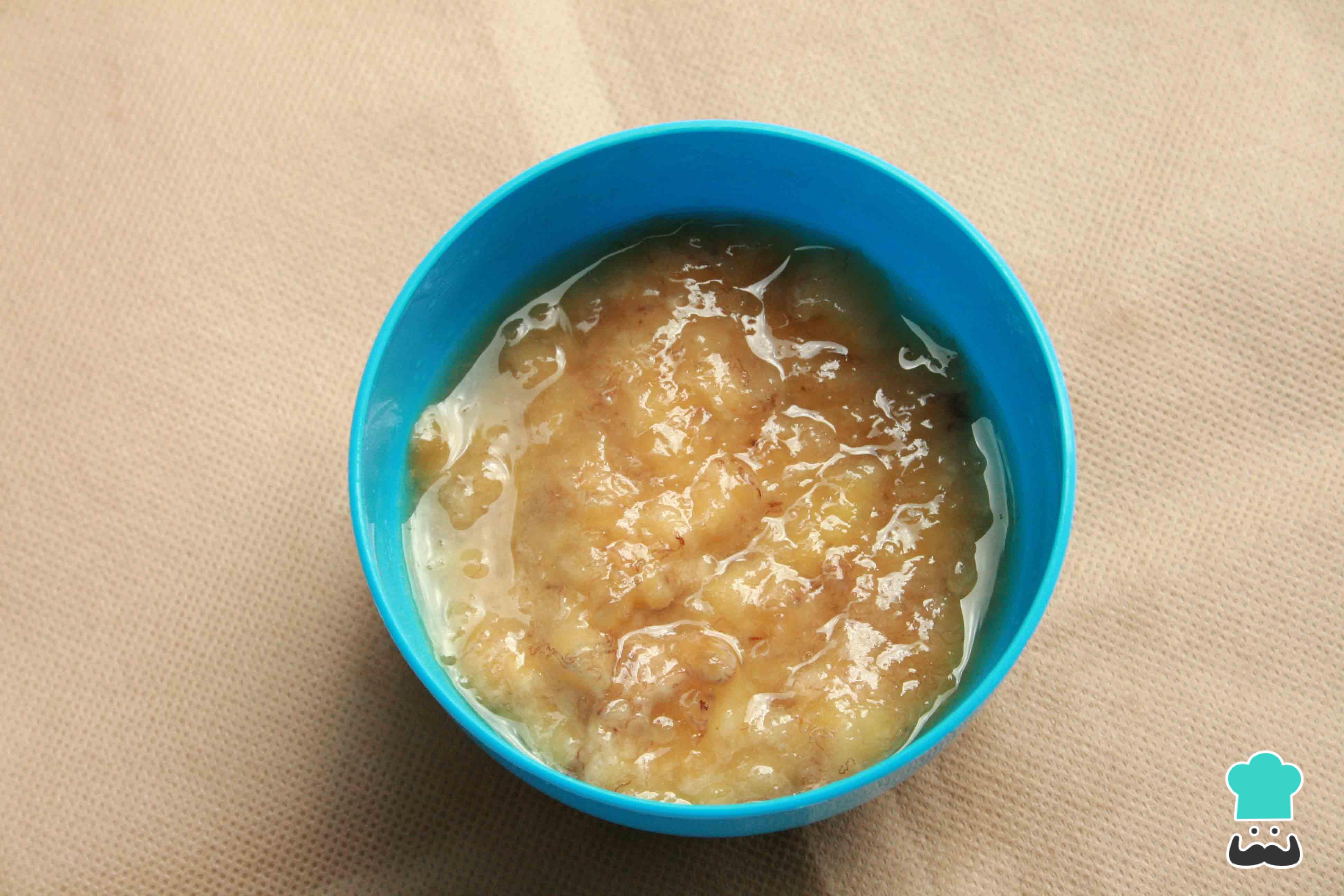 Tritura el plátano y reserva. Recuerda que el plátano (banano o cambur) sustituye al huevo, así como el puré de manzana, en esta receta de panquecas gluten free o en muchas otras preparaciones para celíacos o intolerantes al huevo y lo lácteos.