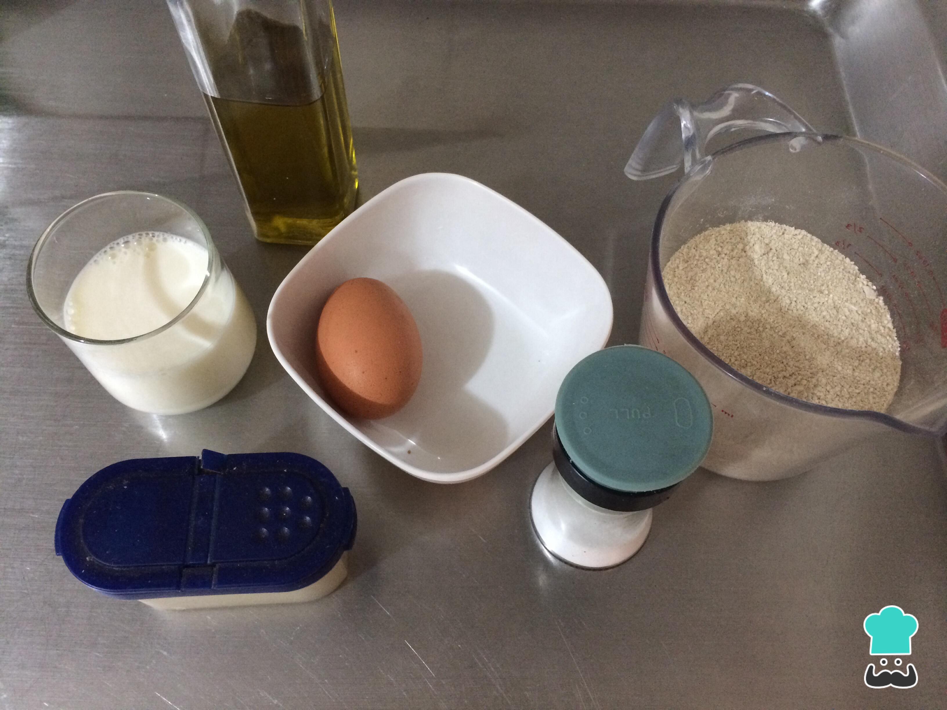 Antes de realizar esta receta, el primer paso es alistar todos los ingredientes. Ten en cuenta que estos ingredientes dan para tres tortitas que hemos calculado para un solo comensal.