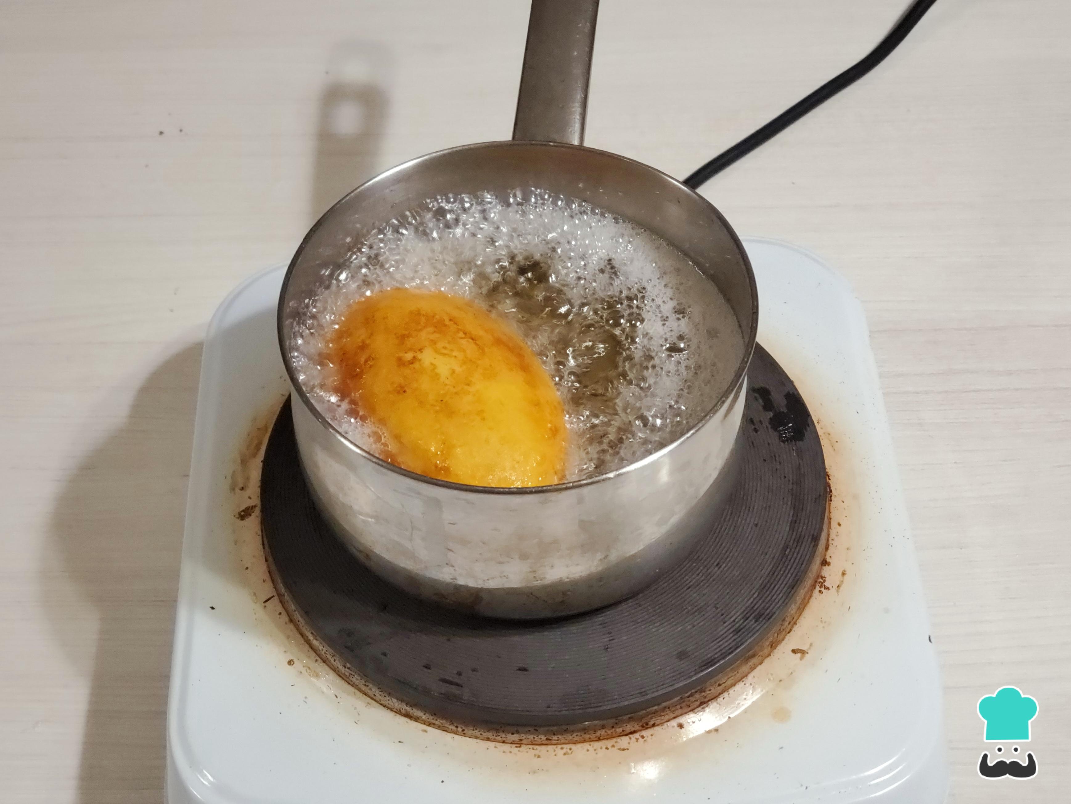 Retíralas de la olla inmediatamente, pélalas mientras aún están calientes y prénsalas rápidamente hasta obtener un puré homogéneo. Deja que se enfríe.