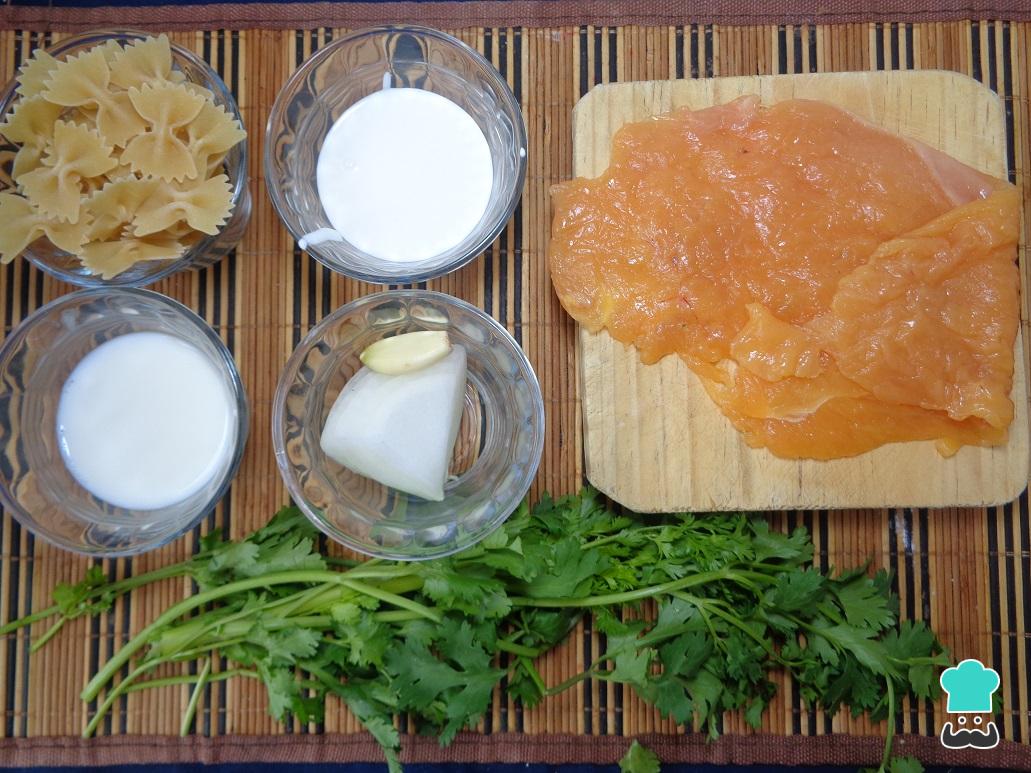 Para preparar este rica receta de pasta al cilantro con pollo, lo primero que hay que hacer es reunir todos los ingredientes.
