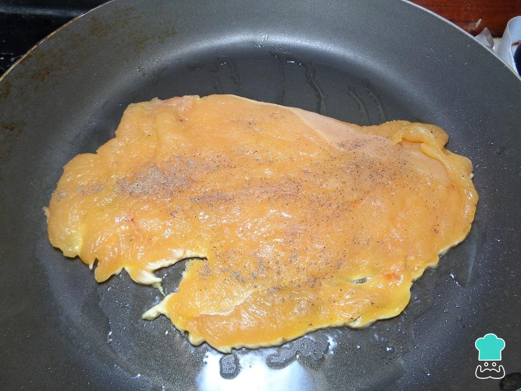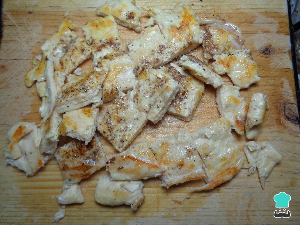 Mientras se cocina las pasta, tomamos la pechuga de pollo, la salpimentamos perfectamente bien y la llevamos a asar sobre un sartén caliente solo con algunas gotas de aceite, dejando que se cocine perfectamente bien.