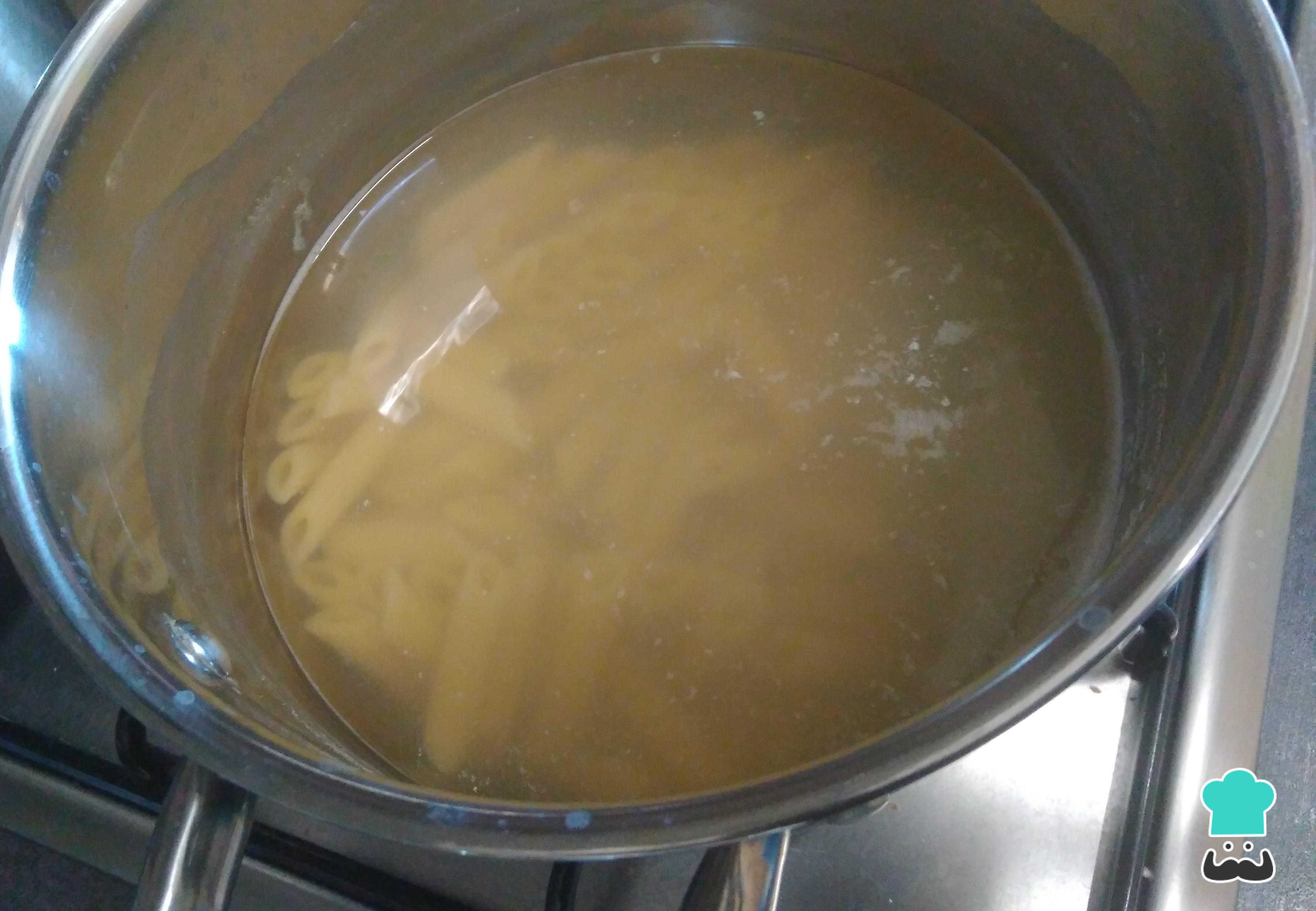 Por otro lado cocinamos las pasta de forma tradicional, con agua hirviendo y una pizca de sal. El tiempo de cocción suele ser de unos 5-7 minutos, pero esto cambia según el tipo de pasta, así que para asegurar que te quede al dente, revisa siempre las indicaciones del fabricante en el paquete.