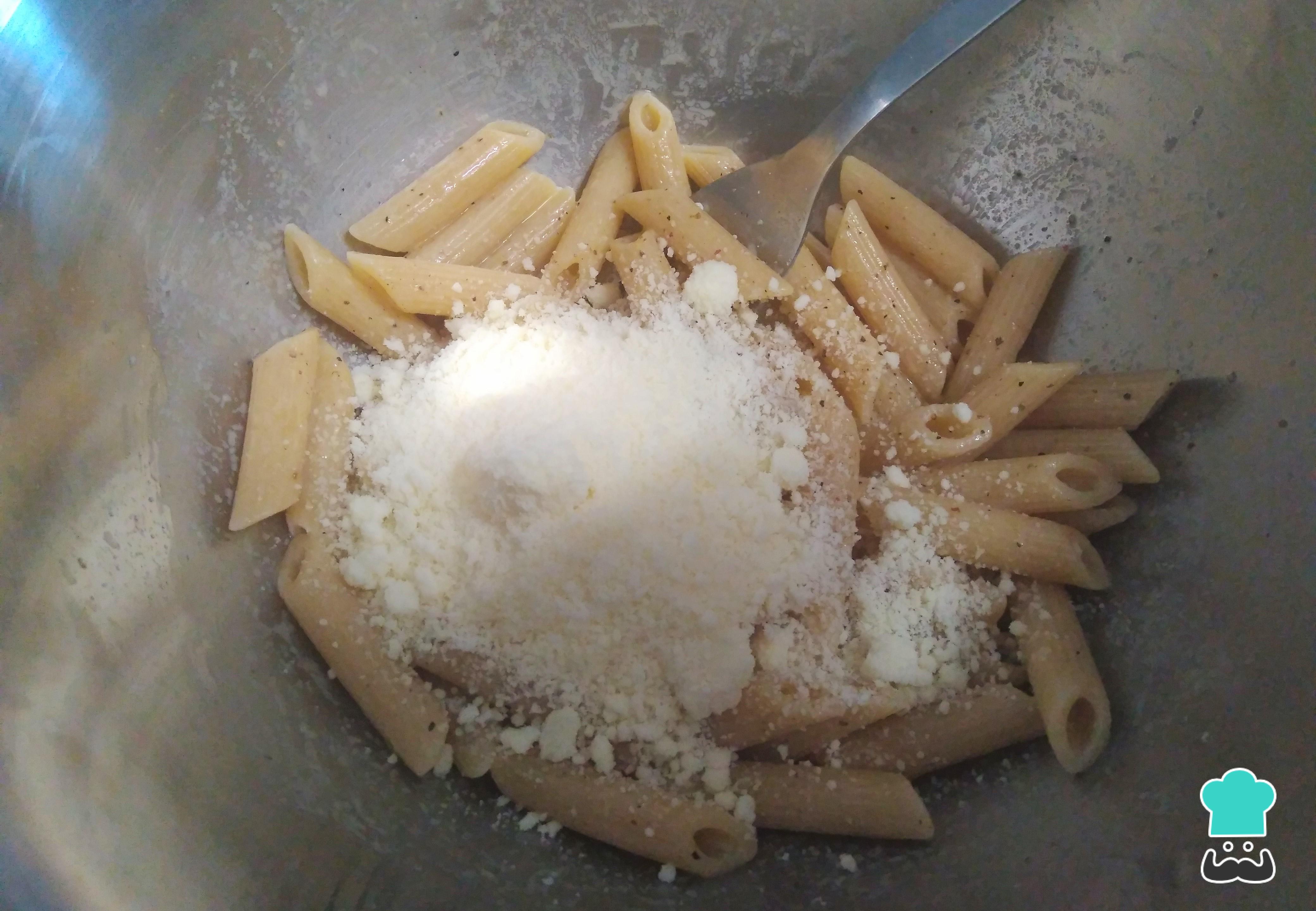 La idea es formar una salsa de queso y pimienta como la de la receta de pasta caccio e pepe.