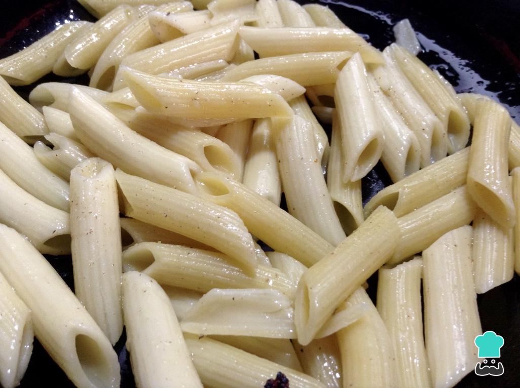 Lleva una sartén a fuego medio con el aceite de oliva. Una vez caliente, agrega la pasta y saltea durante unos minutos.