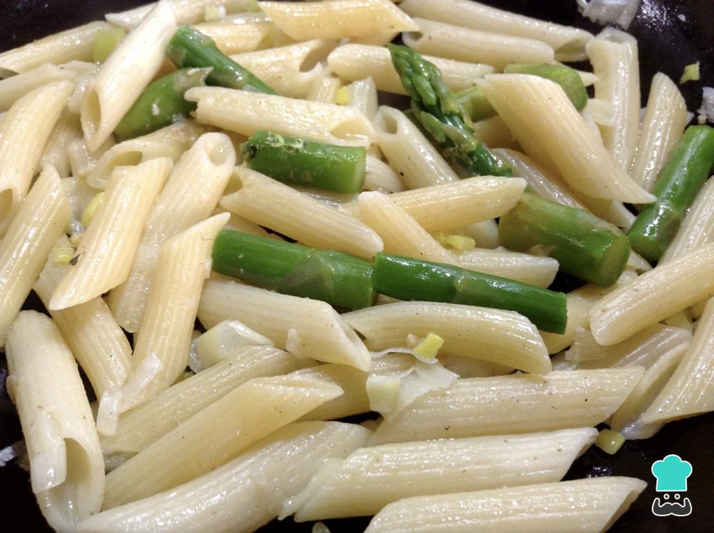 Adiciona los espárragos verdes cocidos a la sartén donde tenemos el resto de ingredientes.