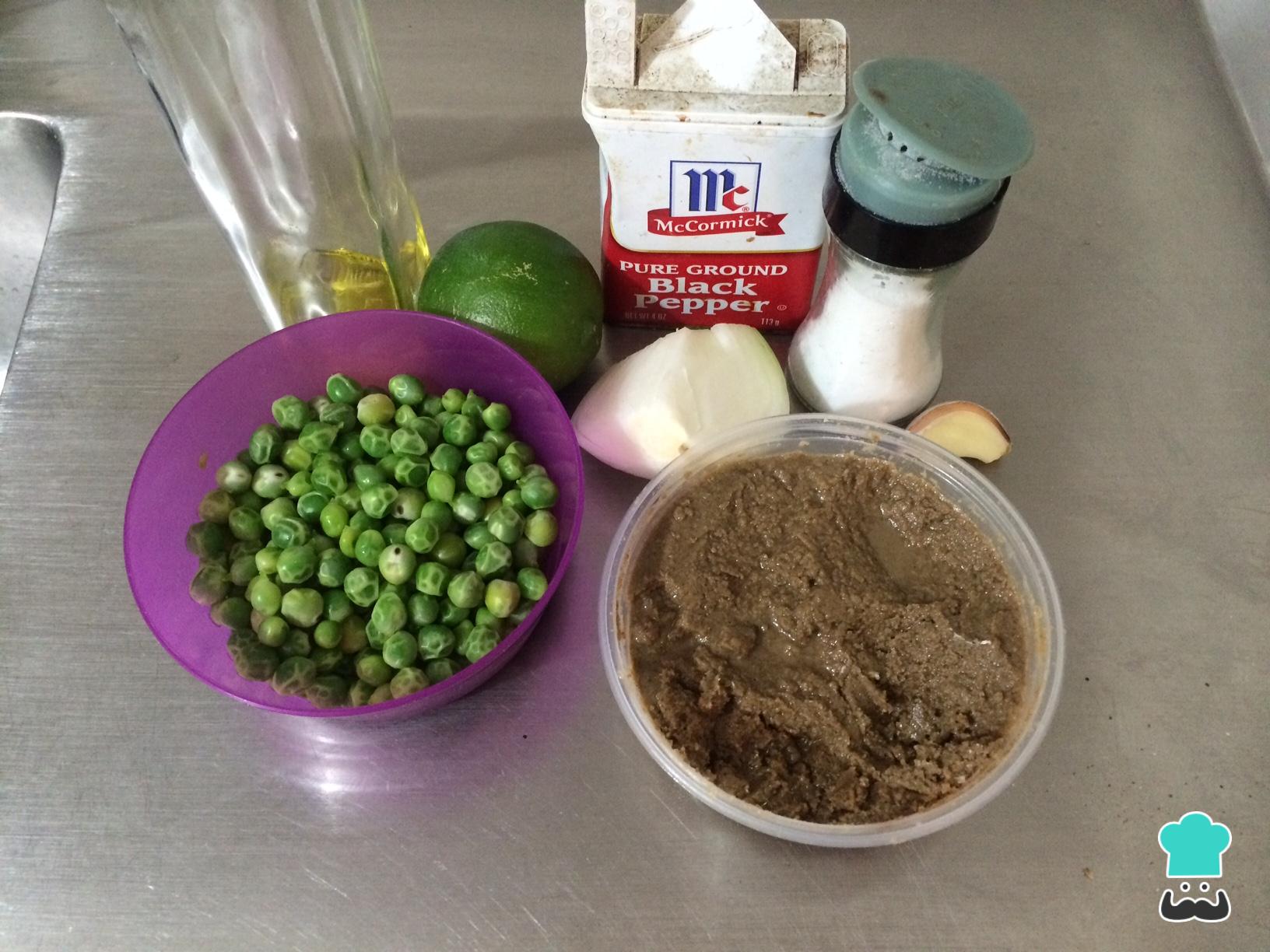 Antes de realizar esta receta con guisantes, el primer paso es alistar todos los ingredientes.