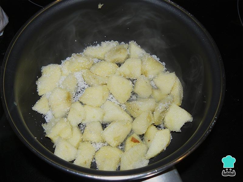 Truco: Para caramelizar la manzana es importante utilizar un cazo viejo. Nunca utilices uno nuevo porque el caramelo es muy corrosivo para los recipientes.