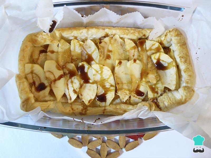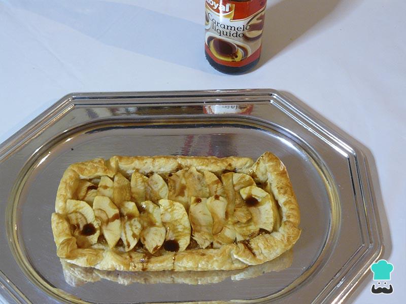 Presentamos la pasta de hojaldre de manzana sobre la bandeja y servimos.