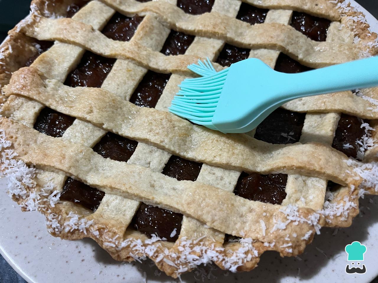 Sirve tu pasta frola sin huevo en porciones como si fuera una pizza, cortada en octavos o bien en cuadrados. ¡A comer! Cuéntanos si la pruebas y comparte la fotografía del resultado final.