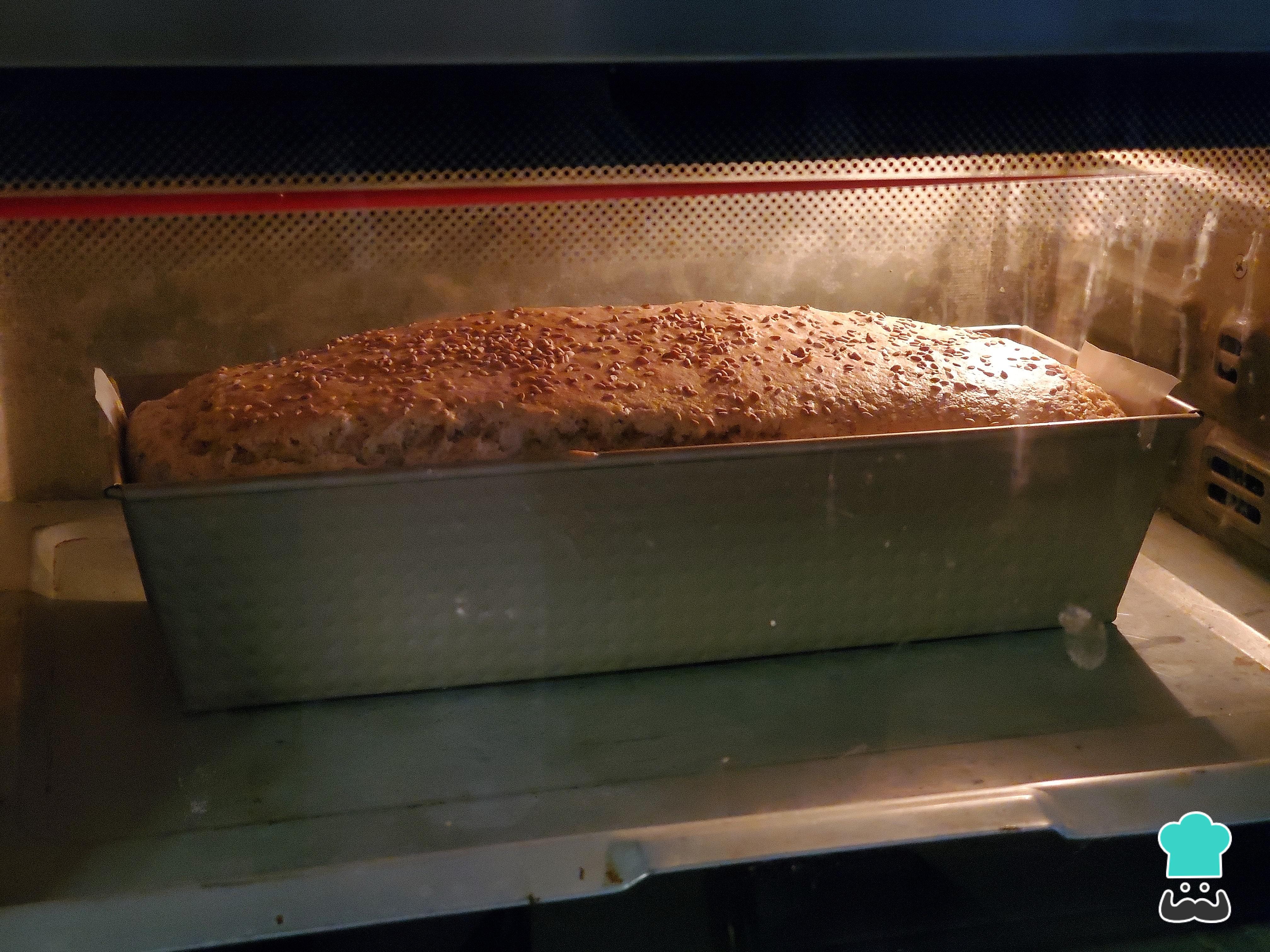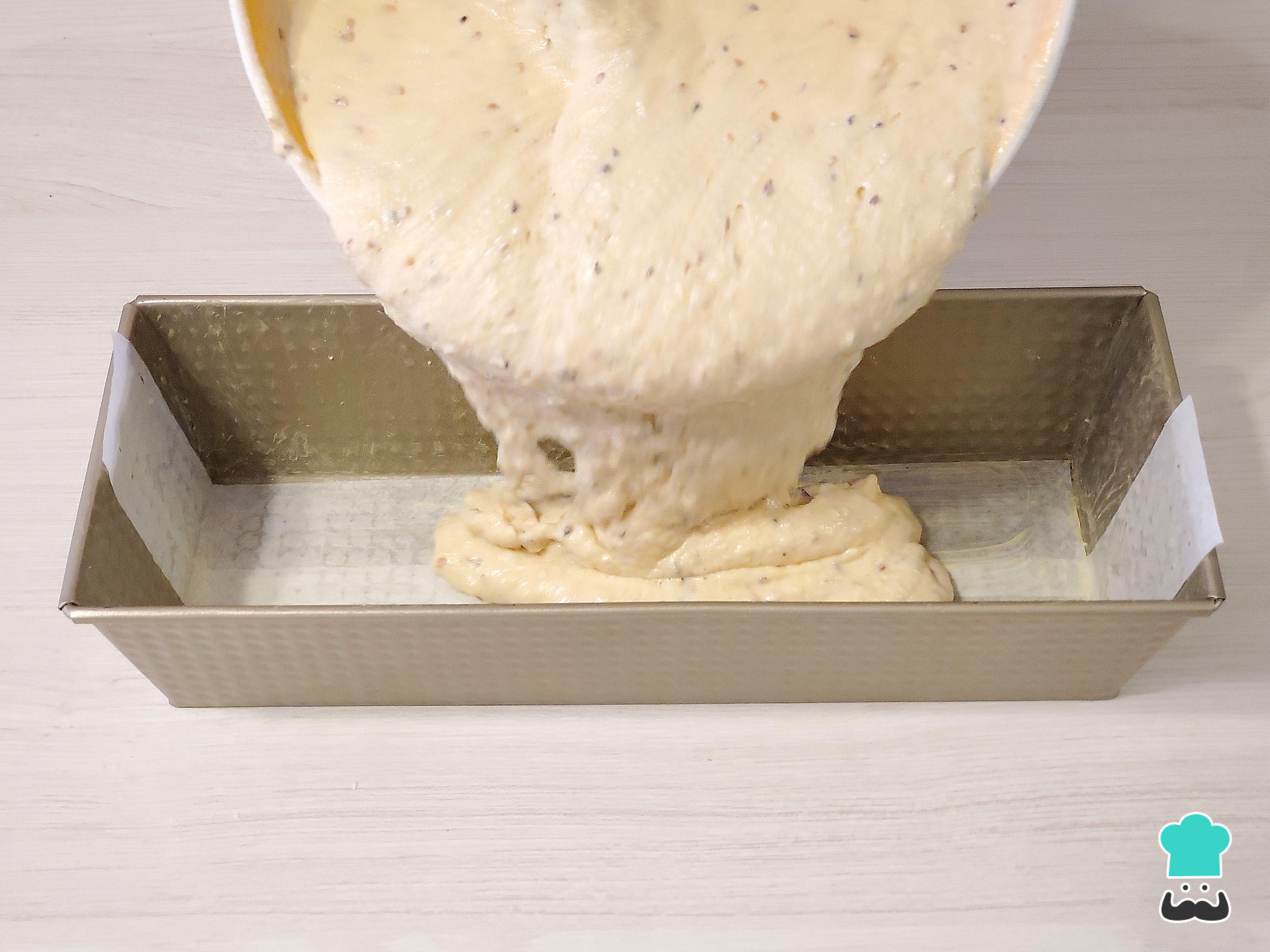 Vierte la masa en un molde que debe estar previamente enmantequillado con papel manteca en la base. Esparce la superficie para que crezca de forma uniforme y espolvorea el ajonjolí encima.