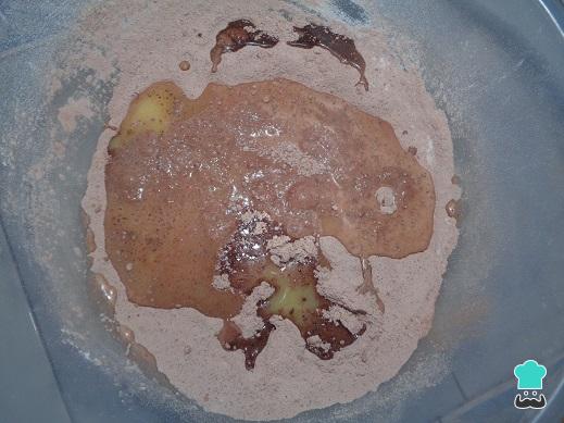 Una vez integrados todos los ingredientes, añadimos el huevo y batimos de nuevo por 2 minutos más hasta conseguir una mezcla suave y homogénea, sin grumos.